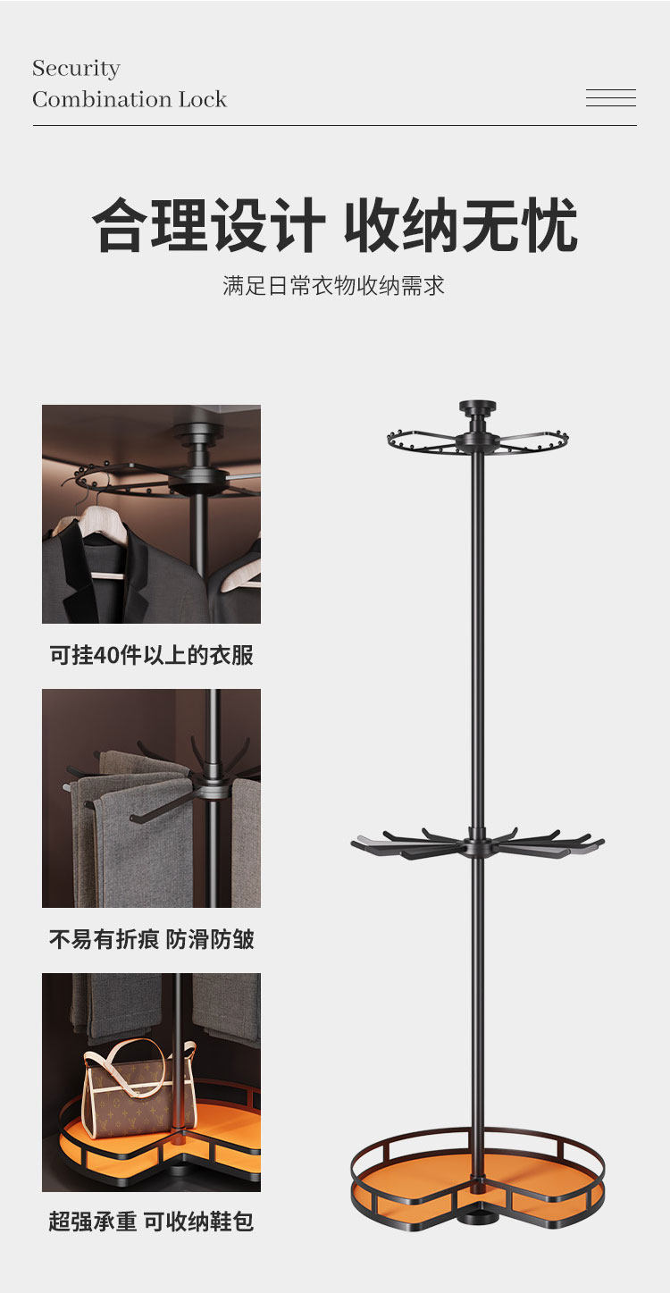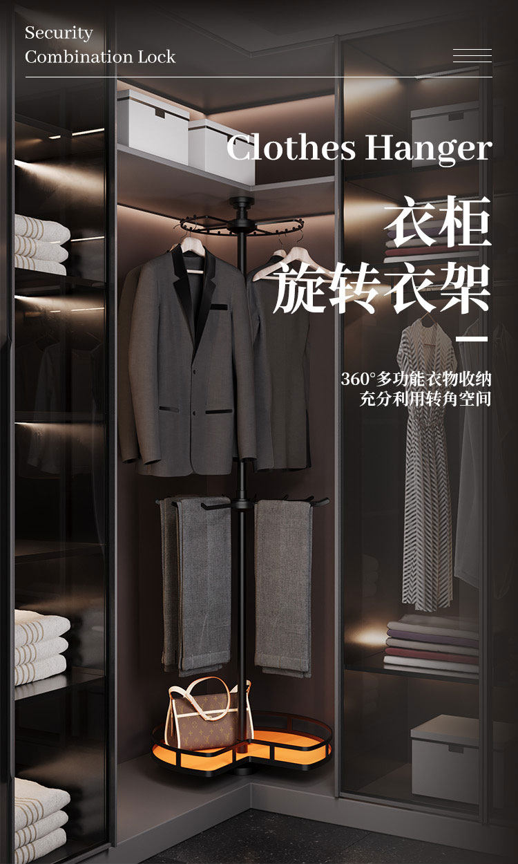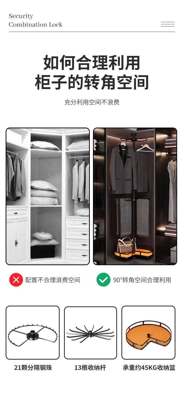 Corner Wardrobe Rotating Clothes Rack Trouser Rack 360-Degree Hanging Clothes Rack Cloakroom Corner Multi-Functional Pull-Out Basket Trouser Rack