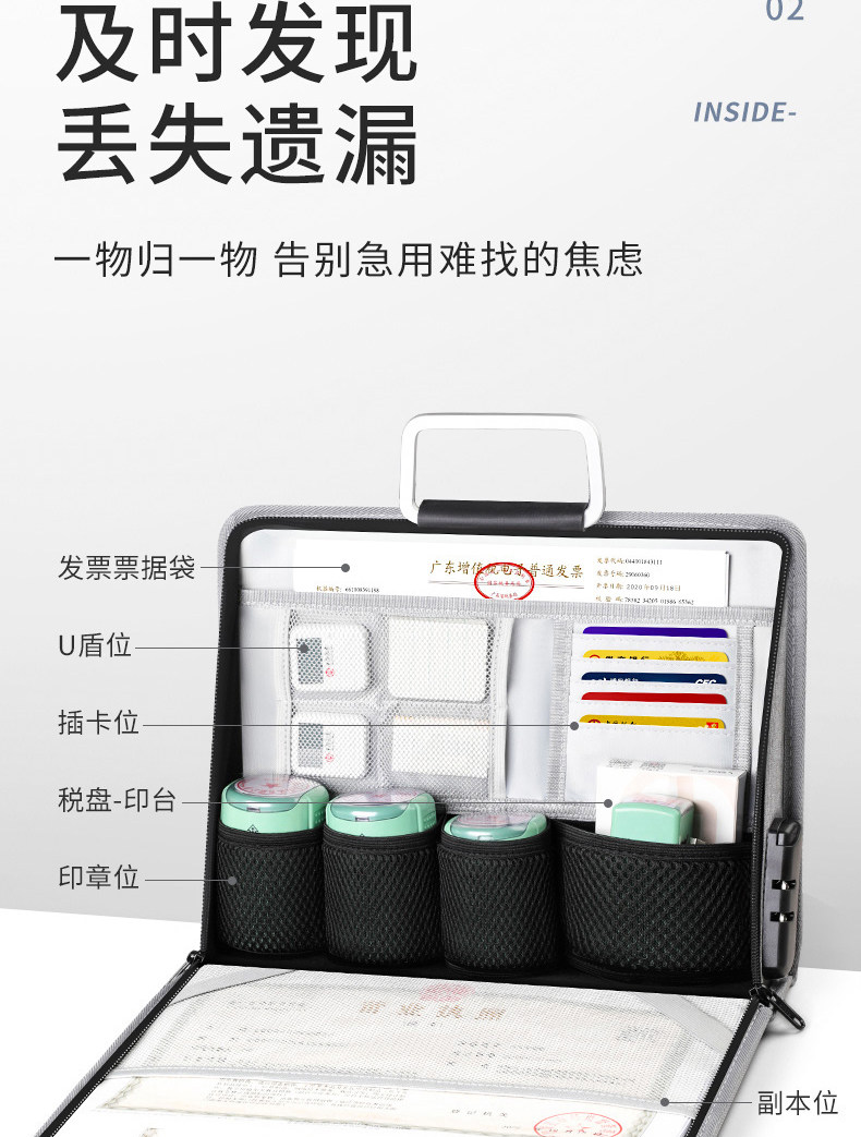 Document Storage Box with Combination Lock, Business License Storage Bag, A3 Original and Duplicate Document Holder, Double-Layer Large Capacity Stamp and License Integrated Bag, Leather Waterproof Business Travel Briefcase