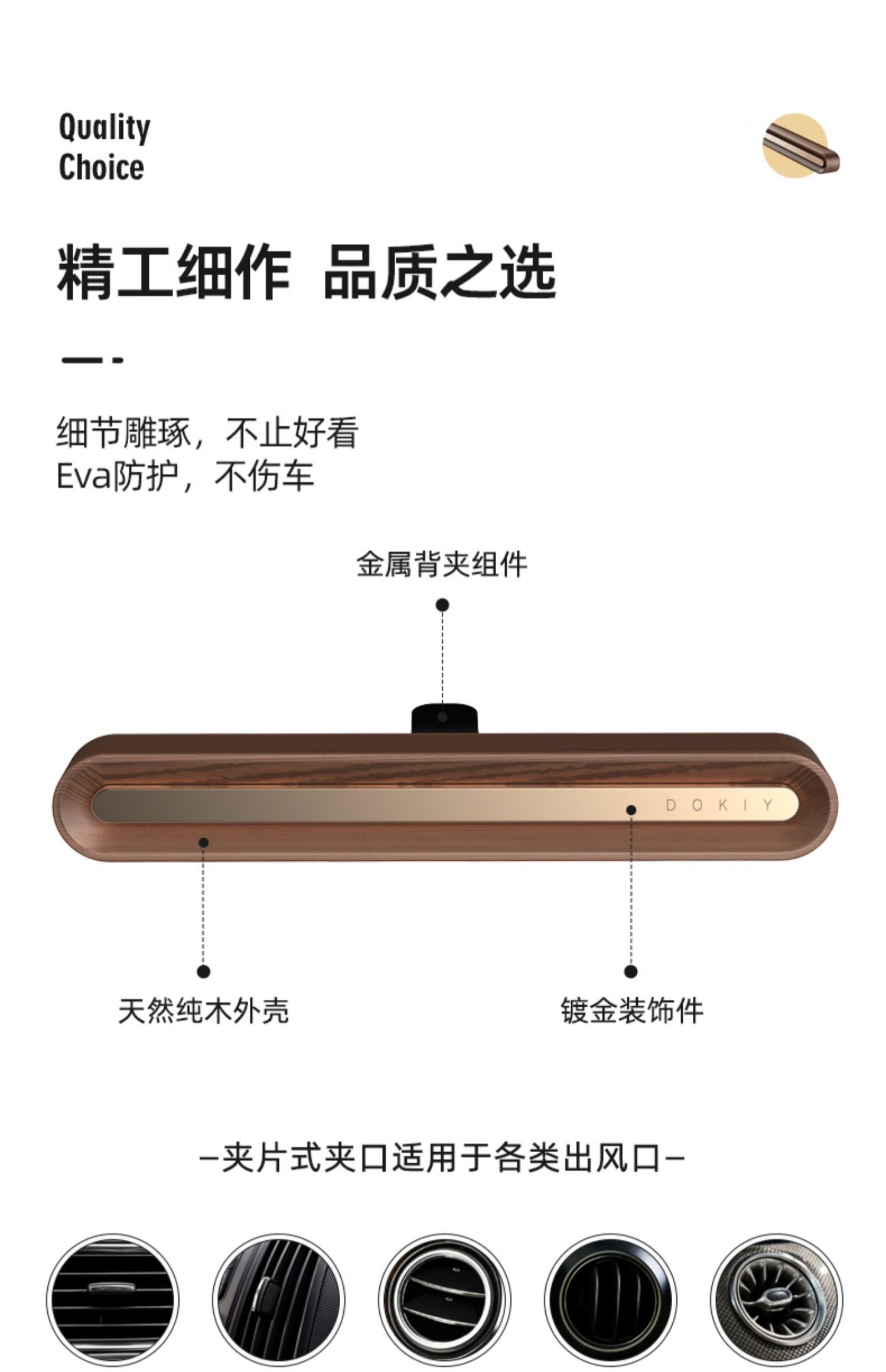 Car Air Freshener with Solid Wood Vent Clip, Car Perfume, Interior Decoration, High-End Long-Lasting Light Fragrance for Men and Women