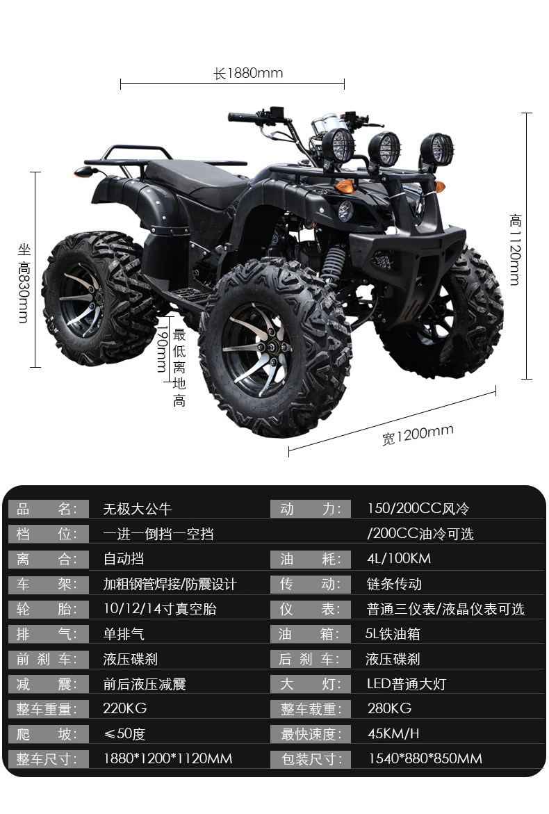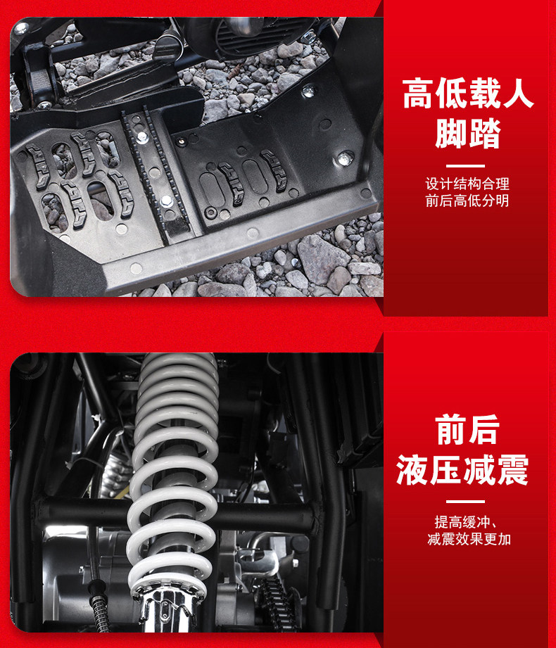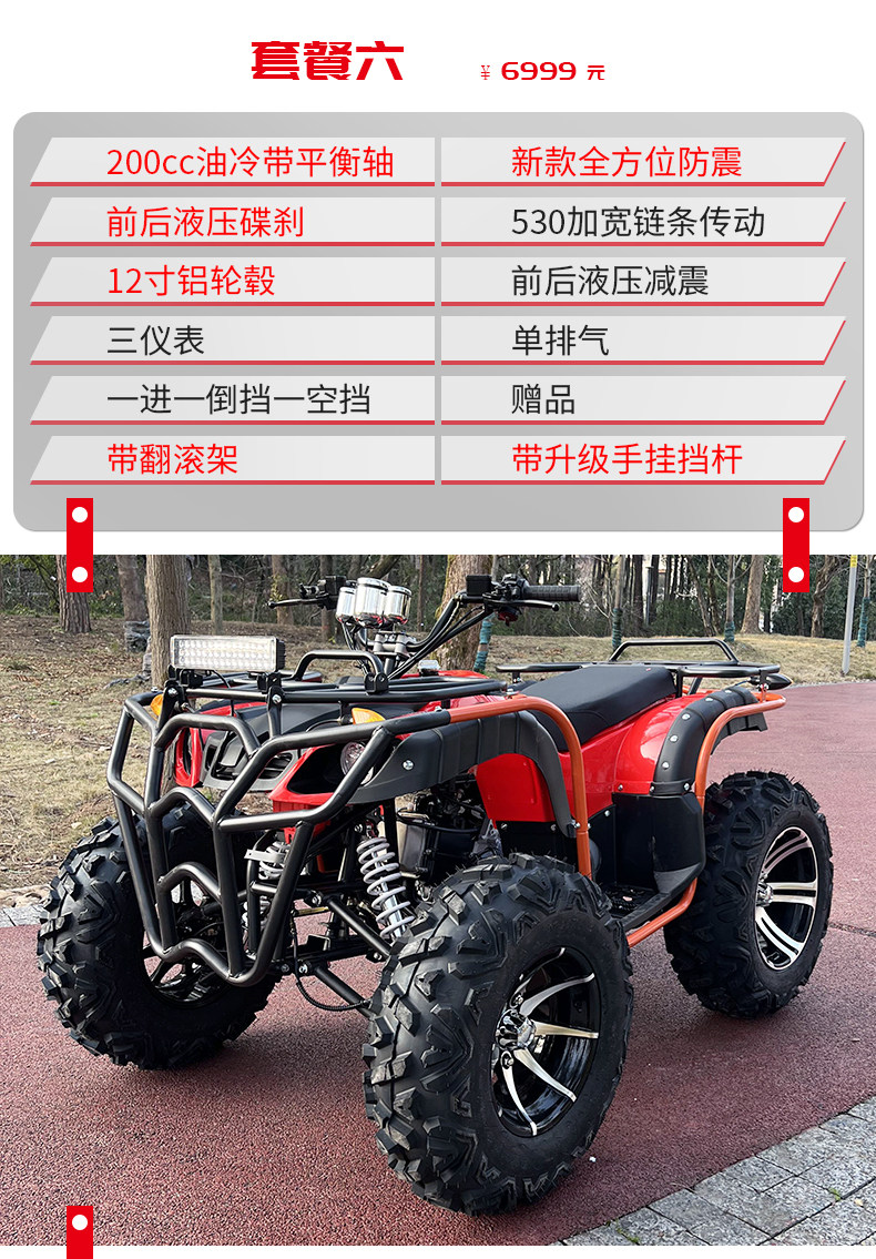 | Color Classification | 150 Air-Cooled Balance Shaft/All-Round Bubble Wrap/ 10inch Iron Wheels/Front and Rear Hydraulic Shock Absorption/530 Chain,150 Air-Cooled Balance Shaft/All-Round Bubble Wrap/ 10inch Aluminum Wheels/Front and Rear Hydraulic Shock Absorption/530 Chain,200 Air-Cooled Balance Shaft/All-Round Bubble Wrap/ 10inch Aluminum Wheels/Front and Rear Hydraulic Shock Absorption/530 Chain,200 Air-Cooled Balance Shaft/All-Round Bubble Wrap/ 10inch Aluminum Wheels/Front and Rear Hydraulic Shock Absorption/530 Chain/With Roll Cage,200 Oil-Cooled Balance Shaft / All-Around Vibration Dampening / 10inch Aluminum Wheels / Front and Rear Hydraulic Shock Absorption / 530 Chain / with Roll Cage / New Hand-Operated Gear Shift Design,200 Oil-Cooled Balance Shaft / All-Around Vibration Dampening / 12inch Aluminum Wheel / Front and Rear Airbag Shock Absorption / 530 Chain / New Hand-Shift Lever Design |
