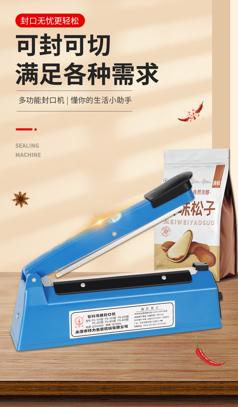 Hand Pressure Sealing Machine Commercial Small Sealing Machine Plastic Bag Aluminum Foil Bag Packaging Machine Food Packaging Bag Household Plastic Sealing Machine Tea Moon Cake Book Heat Shrinkable Film Heat Sealing Machine Film Sealing and Cutting Machine