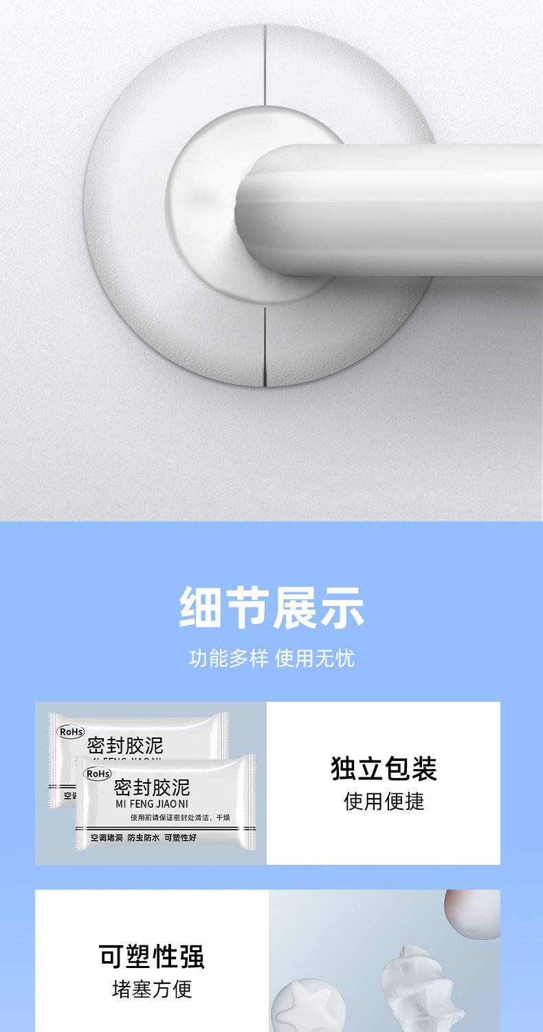 | Color Classification | ✅2 Packs [Anti-Mildew + 0 Formaldehyde] Recommended for Air Conditioning Hole Plugging,✅3 Packs [Anti-Mildew + 0 Formaldehyde] Recommended for Air Conditioning Hole Plugging,✅5 Packs [Anti-Mildew + 0 Formaldehyde] Recommended for Air Conditioning Hole Plugging,✅10 Packs [Anti-Mildew + 0 Formaldehyde] Recommended for Air Conditioning Hole Plugging,✅ 20 Packs [Anti-Mildew + 0 Formaldehyde] Recommended for Air Conditioning Hole Plugging,✅30 Packs [Anti-Mildew + 0 Formaldehyde] Recommended for Air Conditioning Hole Plugging,✅50 Packs [Anti-Mildew + 0 Formaldehyde] Stocking Pack,Pure White Model [1 Pack] Is Not Recommended if It Is Not Enough,Pure White [5-Pack] - Closes 1 Air Conditioner Hole,Pure White Model [10 Pack] Waterproof and Insect-Proof⭐Good Plasticity,Pure White Model [20 Packs] Waterproof and Insect-Proof⭐Good Plasticity,Pure White Model [30 Pack] Waterproof and Insect-Proof⭐Good Plasticity,Pure White Model [50 Pack] Waterproof and Insect-Proof⭐Good Plasticity |