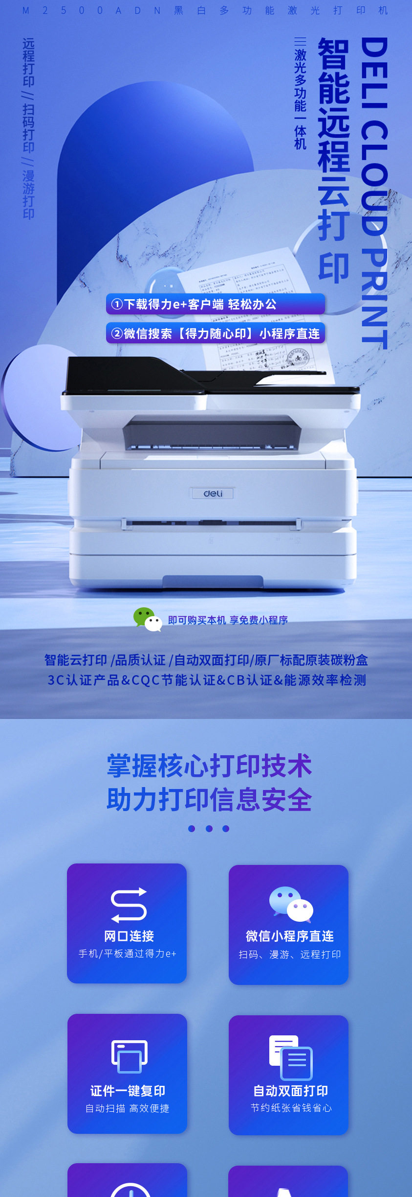 Deli M2000Dnw Black and White Laser Printer, Scanning, Copying and Printing All-In-One Machine, Automatic Double-Sided Office Dedicated 2500Adnw Mobile Phone Wireless Copier, Commercial Multi-Function Printer
