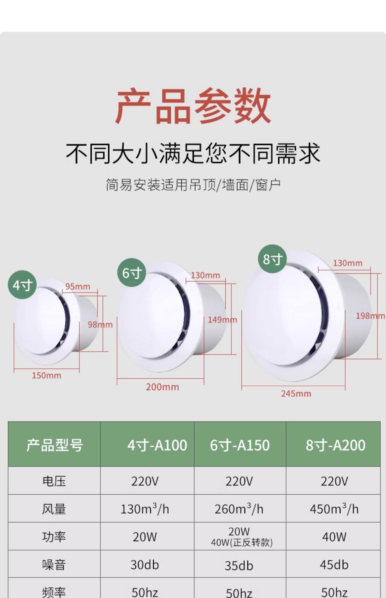 | Color Classification | 4inch -100 Switch Type (Exhaust Type),4inch -100 Switch Type (Air Inlet Type),4inch -100 Remote Control Model (Exhaust Model),4inch -100 Remote Control Model (Can Switch between Exhaust and Air Intake),6inch -150 Switch Type (Exhaust Type),6inch -150 Switch Type (Air Inlet Type),6inch -150 Remote Control Models (Exhaust Model),6inch -150 Remote Control Models (Can Switch between Exhaust and Air Intake),8inch -200 Switch Type (Exhaust Type),8inch -200 Switch Type (Air Inlet Type),8inch -200 Remote Control Model (Exhaust Model),8inch -200 Remote Control Model (Can Switch between Exhaust and Air Intake),4inch -100 Switch Type (Air Inlet Type) with Filter,6inch -150 Switch Type (Air Inlet Type) with Filter,8inch -200 Switch Type (Air Inlet Type) with Filter,4inch -100 Square Panel (Exhaust Type),6inch -150 Square Panel (Exhaust Type),8inch -200 Square Panel (Exhaust Type) |