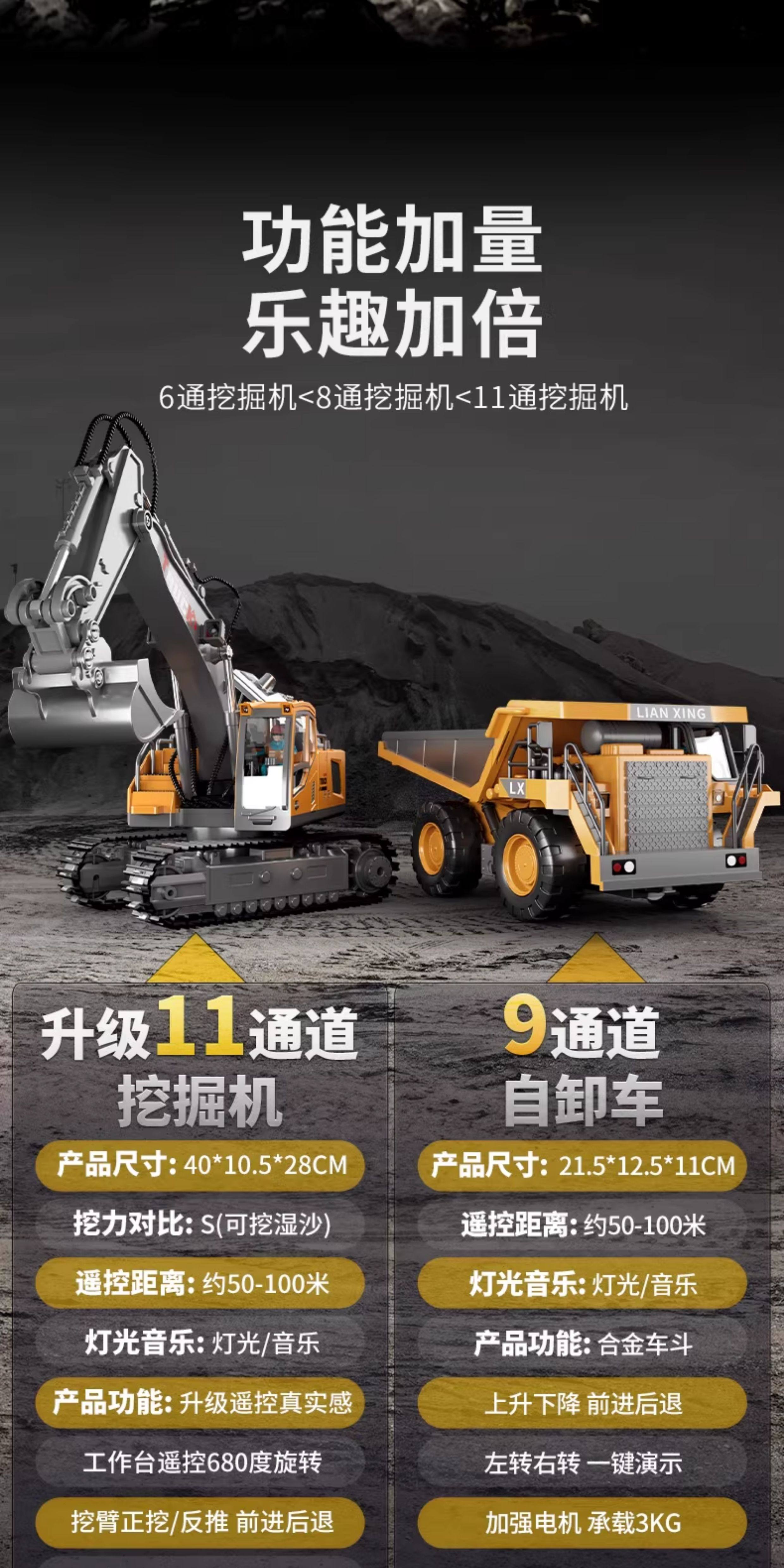 | Color Classification | Alloy Version 6-Channel Excavator[Classic Color],[Upgraded Workbench Remote Control Rotation]10-Action Alloy Excavator Set[Cost-Effectiveness],[Cost-Effectiveness]Large 13 Command 11-Pass Alloy Excavator[Full Function],[Top Rocker]Large 13 Command 11-Pass Alloy Excavator[Classic],[Top Rocker]Large 13 Command 11-Pass Alloy Excavator[White],[Top Configuration]Large 13 Command 11-Pass Alloy Excavator[Premium White],[Top-Of-The-Line Enhanced Edition]Large 17-Instruction Individually Controlled Articulated Alloy Excavator[Classic],[Top-Of-The-Line Enhanced Edition]Large 17-Instruction Individually Controlled Articulated Alloy Excavator[White],[Cost-Effectiveness]11-Channel Excavator + 9-Channel Dump Truck[Classic Yellow],[Recommended for Fun]11-Channel Excavator + 9-Channel Dump Truck[Classic Yellow],[Have Fun]11-Channel Excavator + 9-Channel Dump Truck[White],[Have Fun]11-Channel Excavator + 9-Channel Dump Truck[Premium White],[Top-Tier Interactivity]17-Instruction Excavator + 9-Instruction Dump Truck[Classic],[Can Handle Powerful Motors]Alloy 9-Channel Dump Truck[Classic],[Can Handle Powerful Motors]Alloy 9-Channel Dump Truck[White],[Cost-Effectiveness]Alloy 6-Channel Dump Truck,[Cost-Effectiveness]Large 13 Command 11-Pass Alloy Excavator - Full Function,5 Channel Excavator[Classic Yellow],One-Piece Molded Thickened Track★Tough, Wear-Resistant, and Not Easily Broken★3C Certified, Sturdy Material, Guaranteed to Be Resistant to Falling and Not Easily Broken★High-Capacity, 2-Hour Battery Life, Rechargeable Liebherr 970 Large Truck Heavy-Duty Hook Truck Handle for Large Cranes,Recommendations for Children's Day Gifts★Children's Day Gifts for Children★Write Greeting Cards★Wishing Them a Happy Birthday!★Artificial Full Hydraulic Model Black Technology Handle Excavator Engineering Vehicle Internet Celebrity Hook Machine Excavator Track Charging Remote Control,⭐Contact Customer Service for Store Activities and Get Surprises,--------------------------,--------------------------------,--------------------------- |