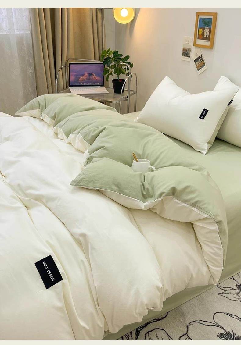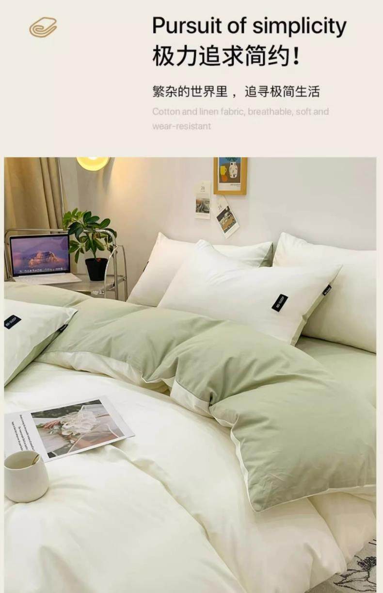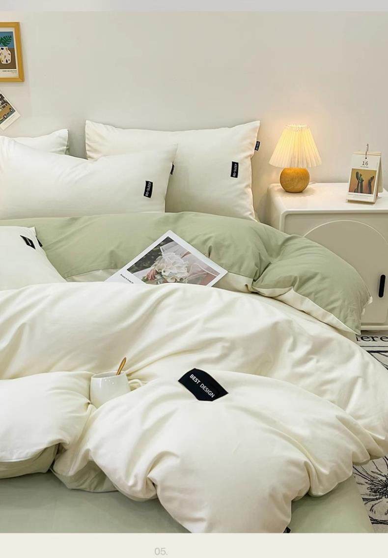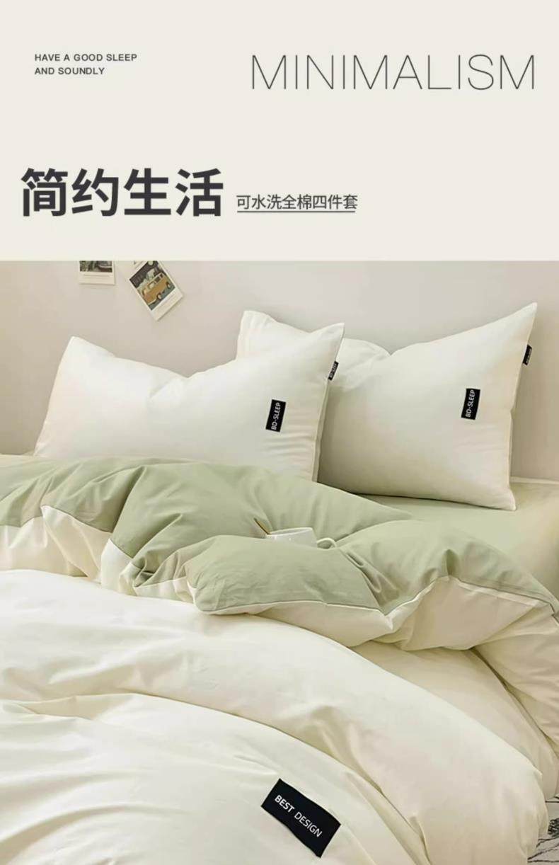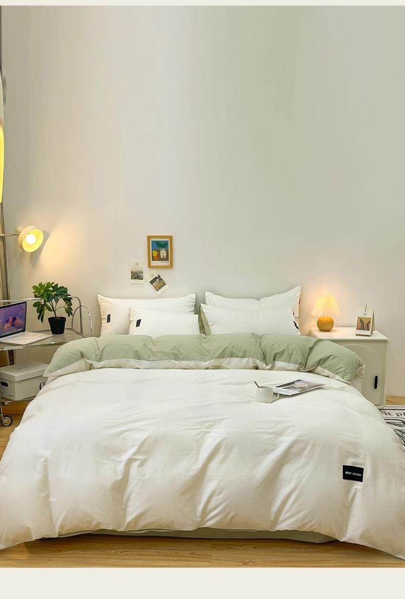 Pure Cotton Four-Piece Set, 100% Cotton 2025 New Style Bed Sheet, Duvet Cover, Washed Cotton Dormitory Three-Piece Bedding Set 4