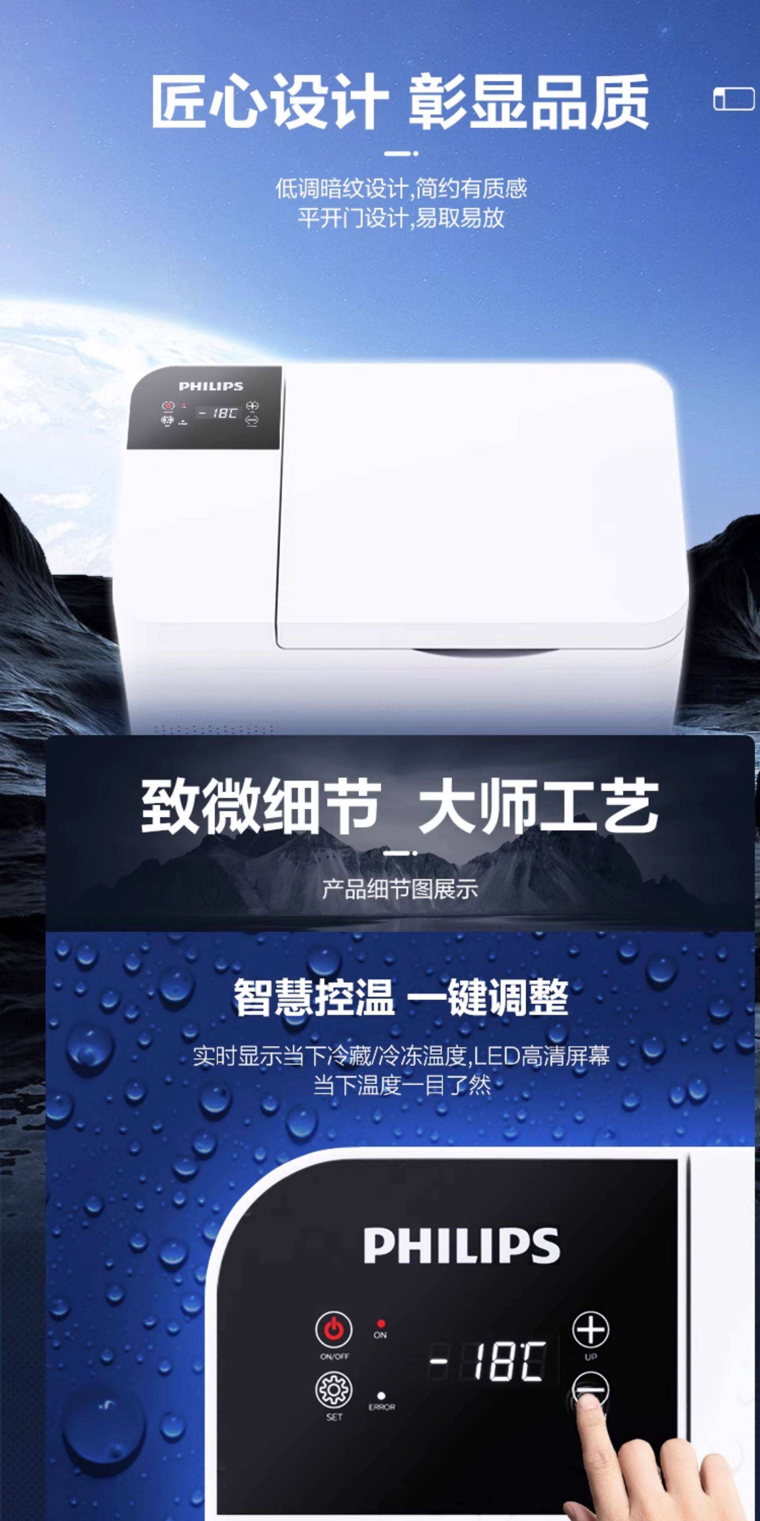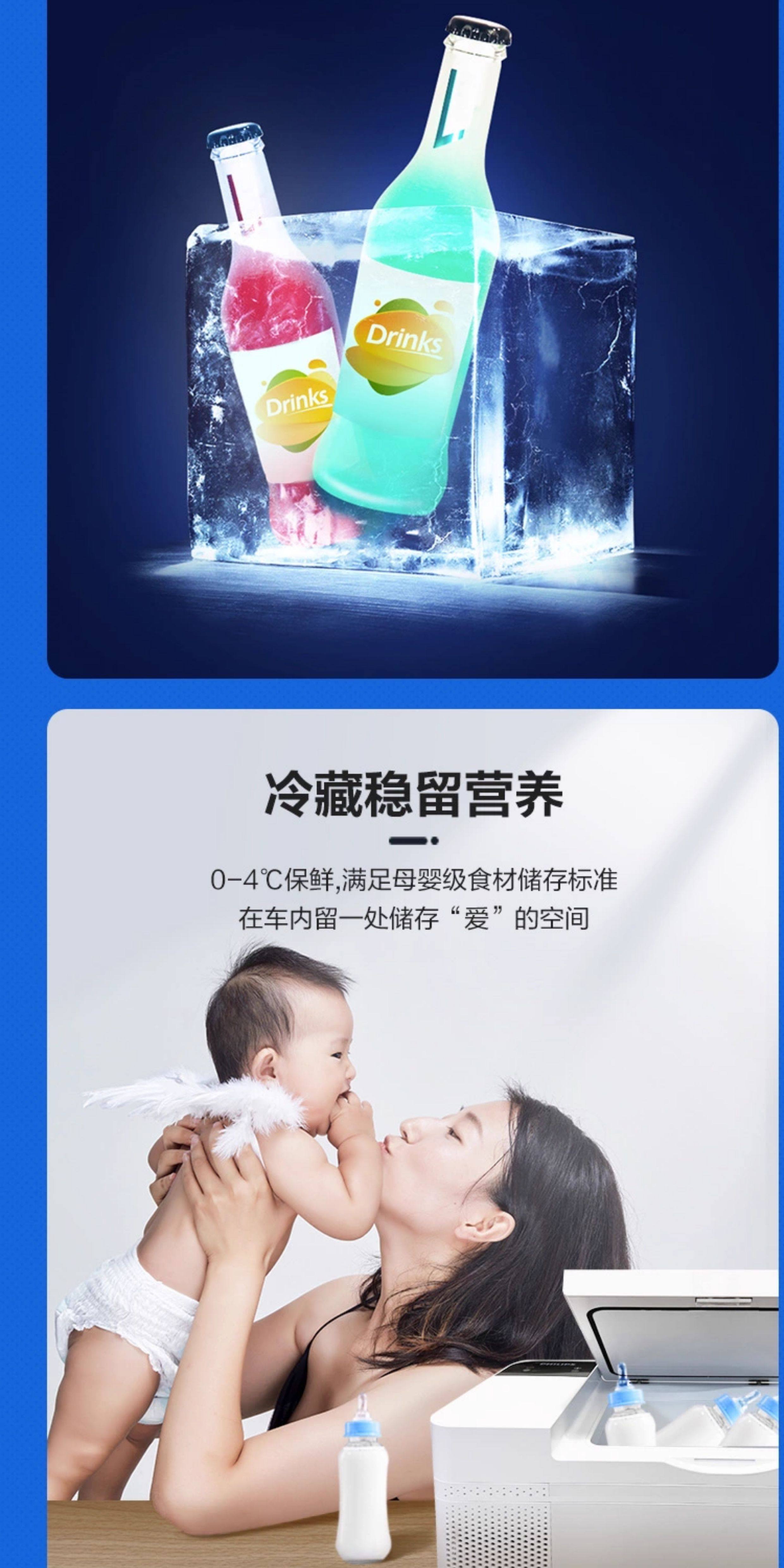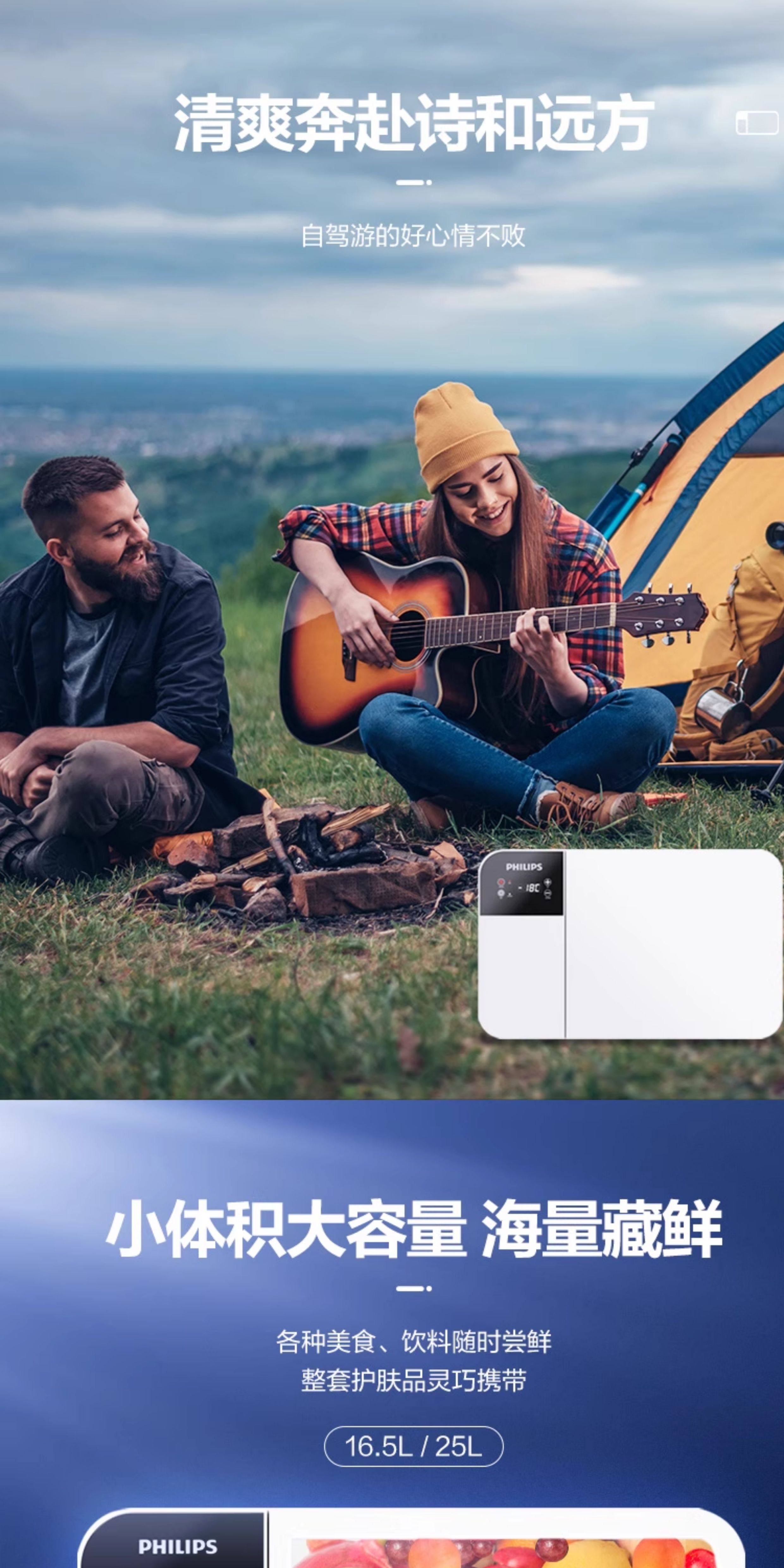 Philips Car Refrigerator 12/24V Dual-Use for Self-Driving Tours, Outdoor Camping, and Home Use, Car Refrigerator Tb5301