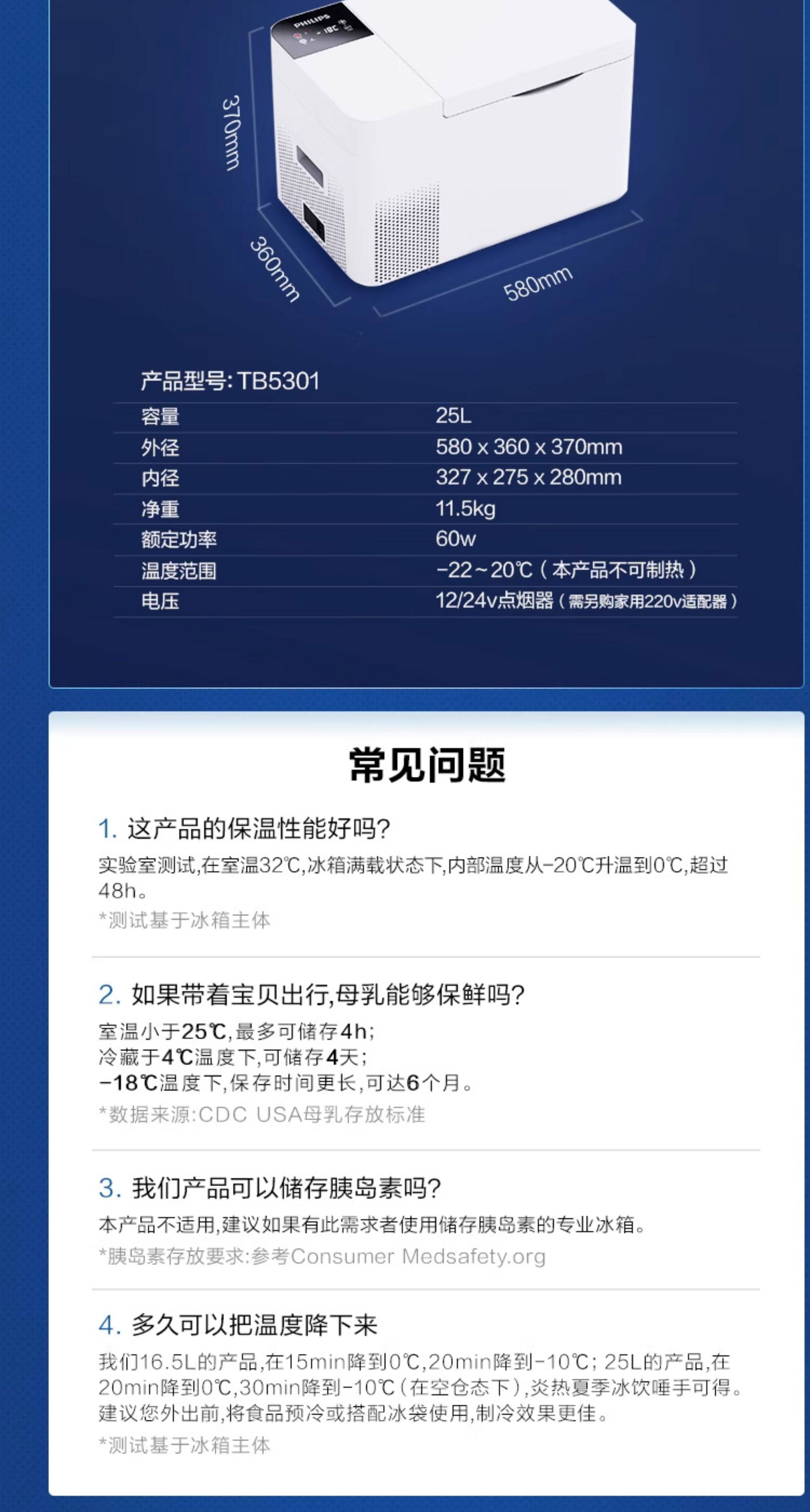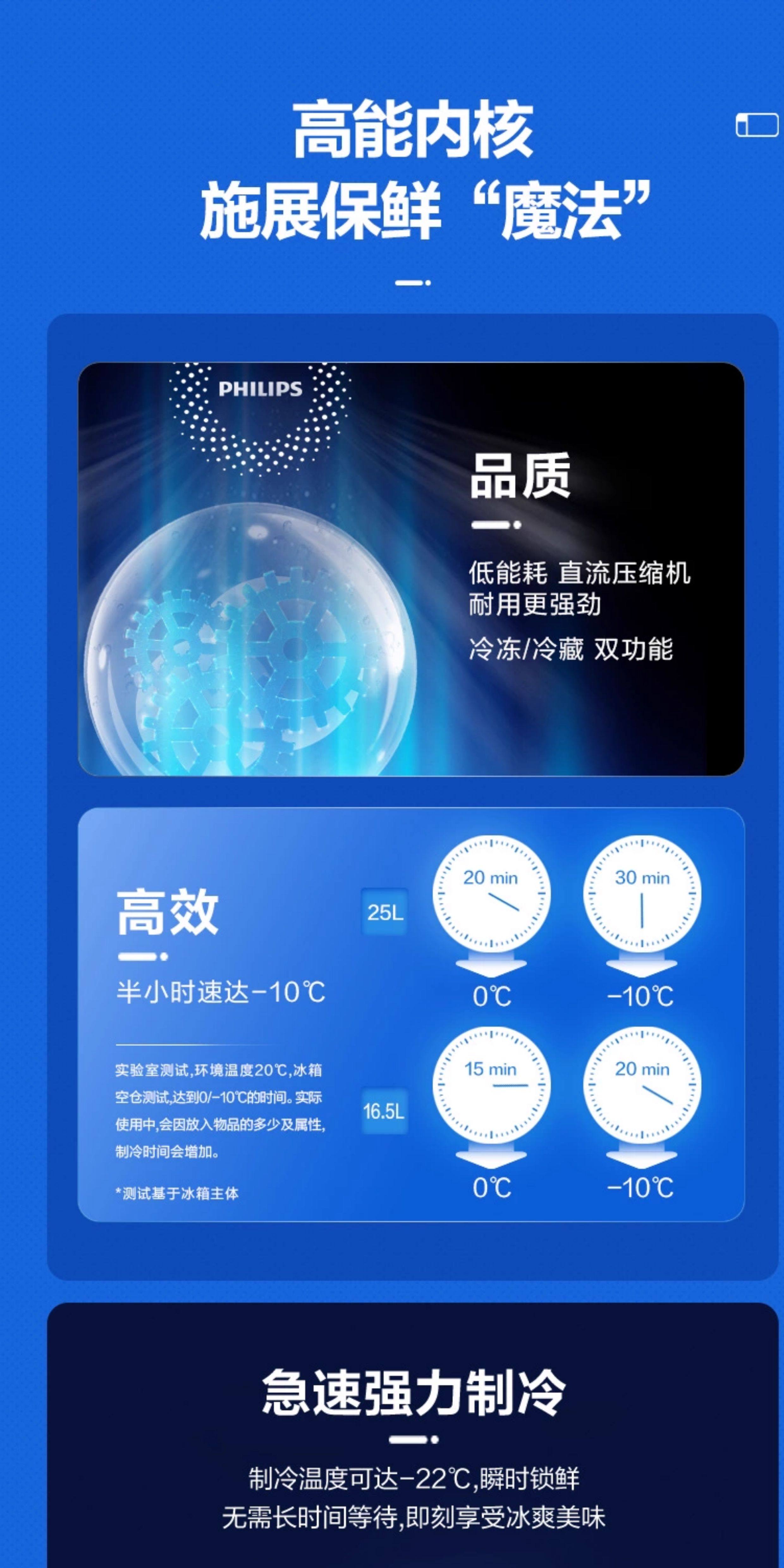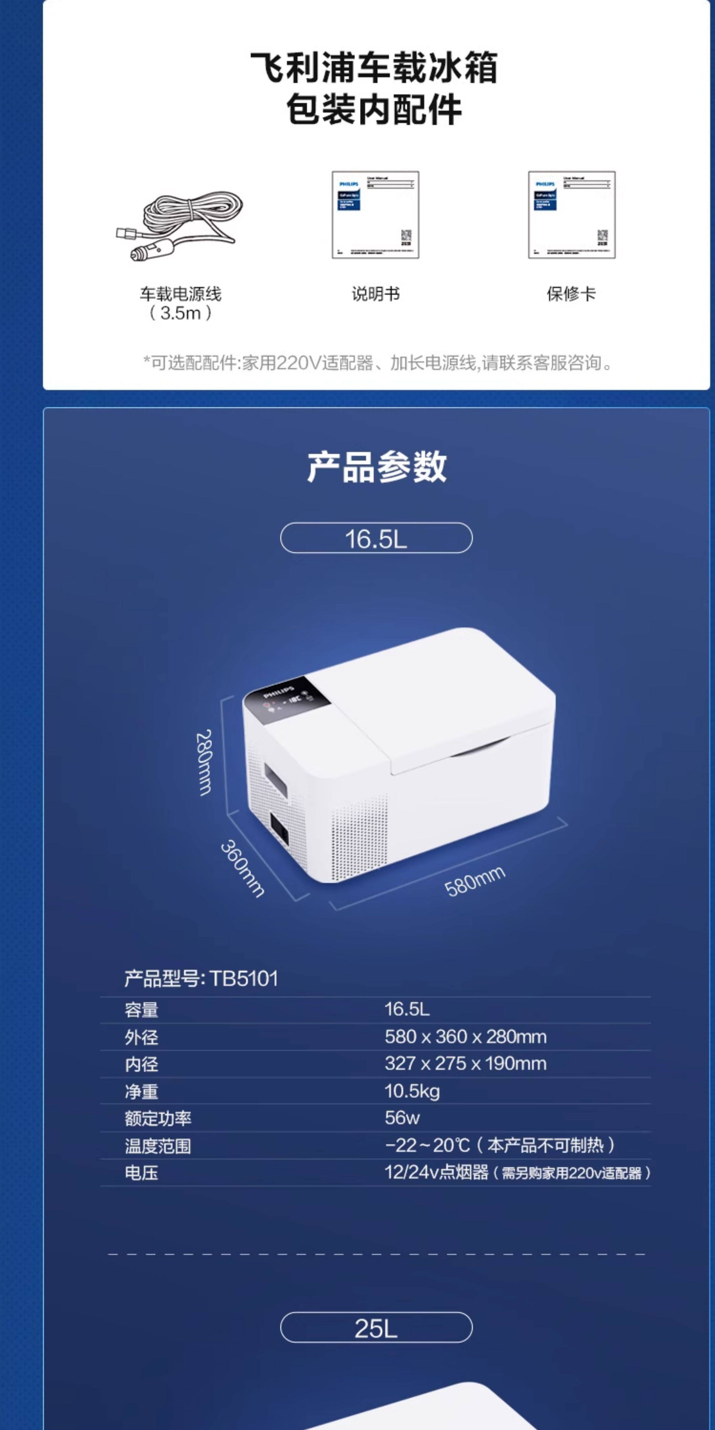 Philips Car Refrigerator 12/24V Dual-Use for Self-Driving Tours, Outdoor Camping, and Home Use, Car Refrigerator Tb5301