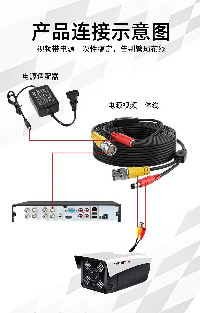 10.5m Home Surveillance Camera Cable Coaxial High-Definition Analog Cable Surveillance Video Power Supply Integrated Finished Product Cable