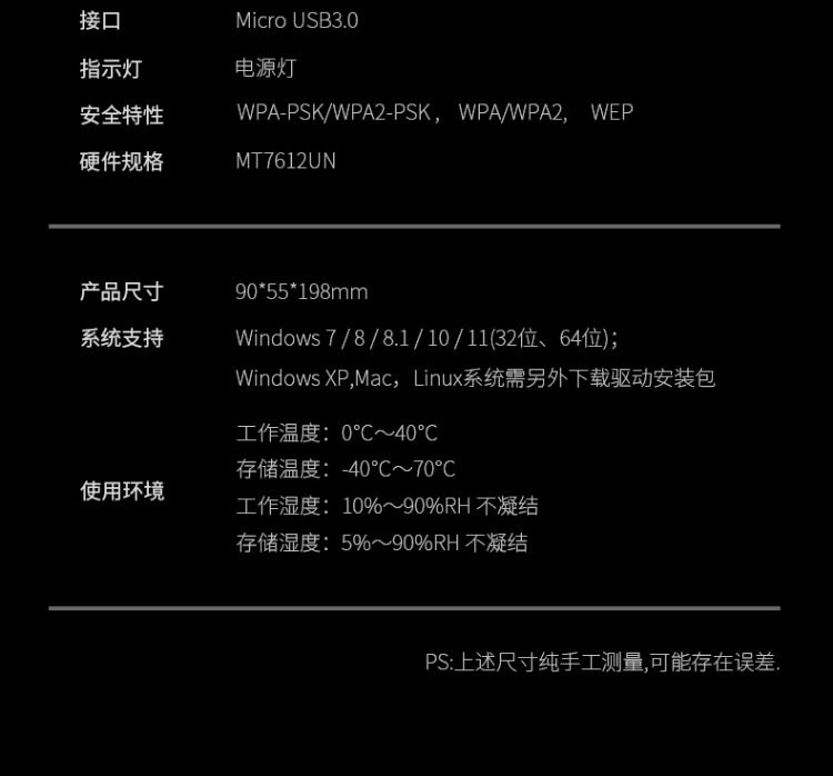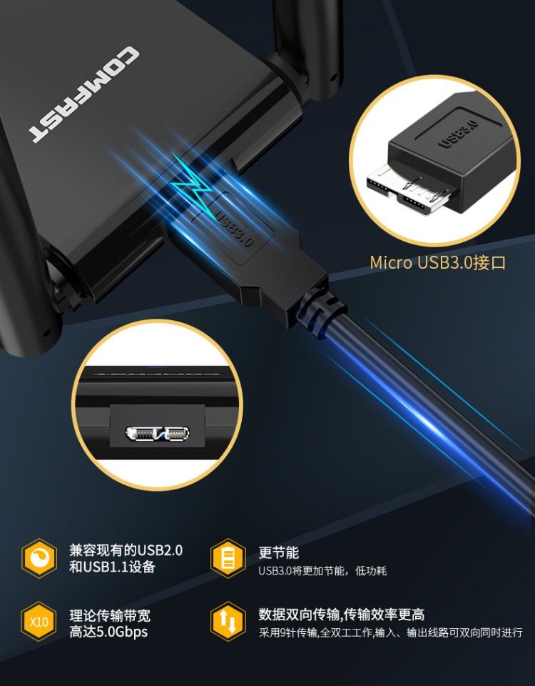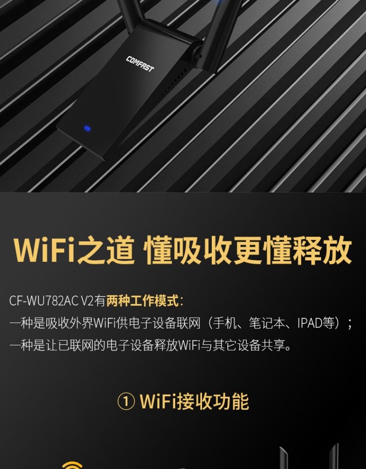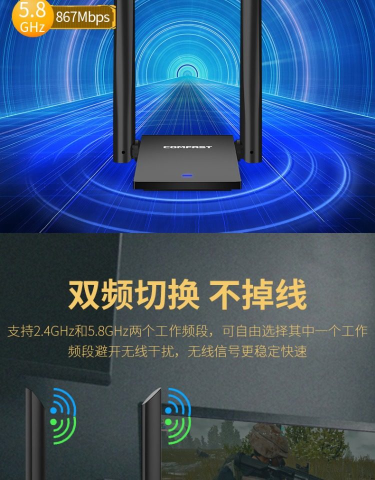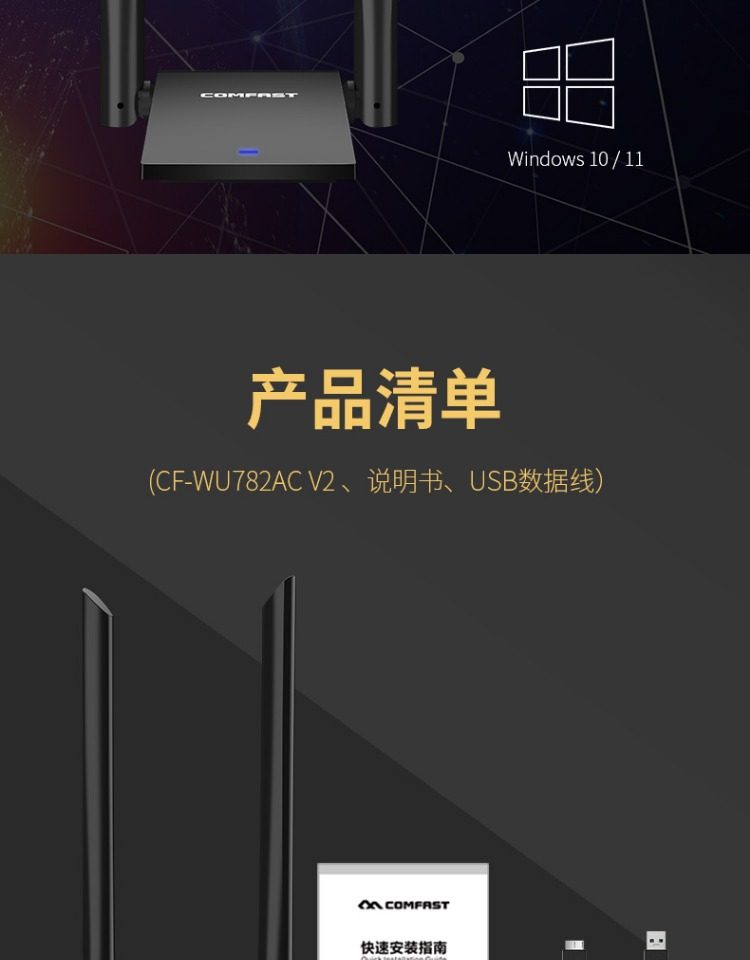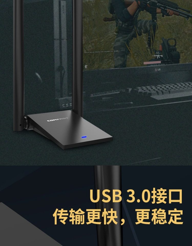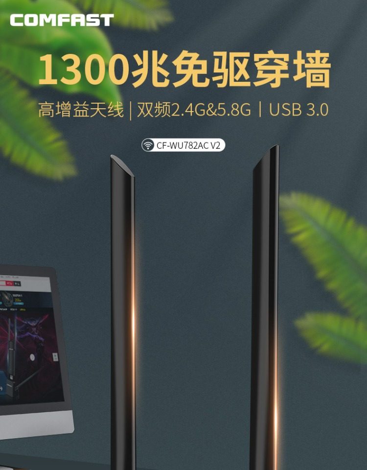 Comfast Wireless Network Card Desktop Wifi Receiver Driver-Free Dual-Band Gigabit 5g Signal Available for Dormitory Home Use USB Wireless Network Card Portable Network Transmitter Cf-Wu782Ac