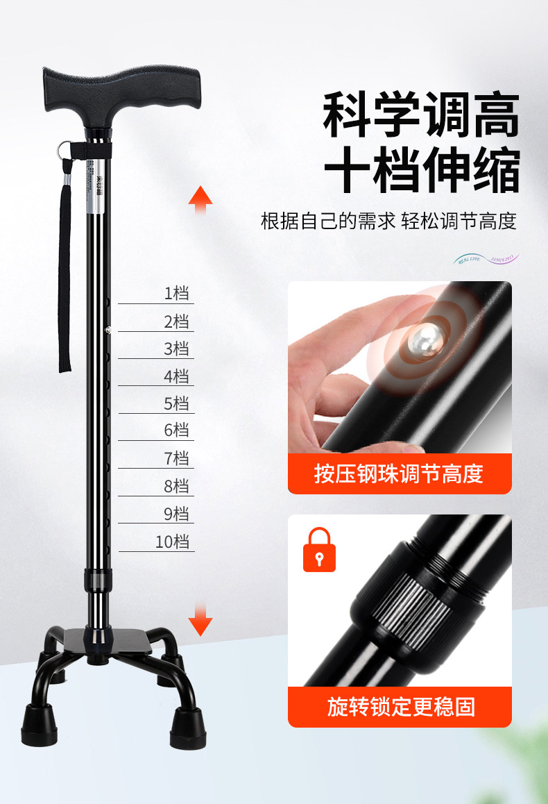 Japanese Leilai Fu Elderly Walking Stick, Extended and Widened, Large Four-Legged Cane, Non-Slip, Stable, Portable, Telescopic Walking Stick for the Elderly