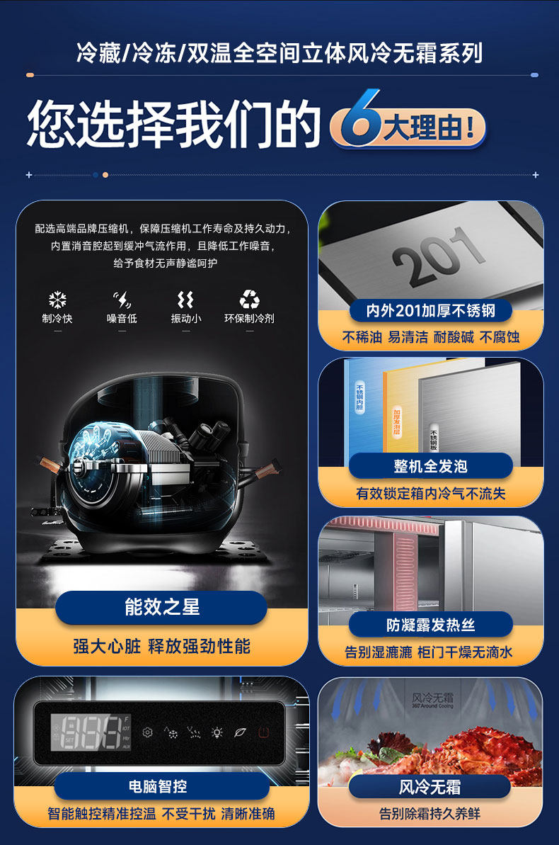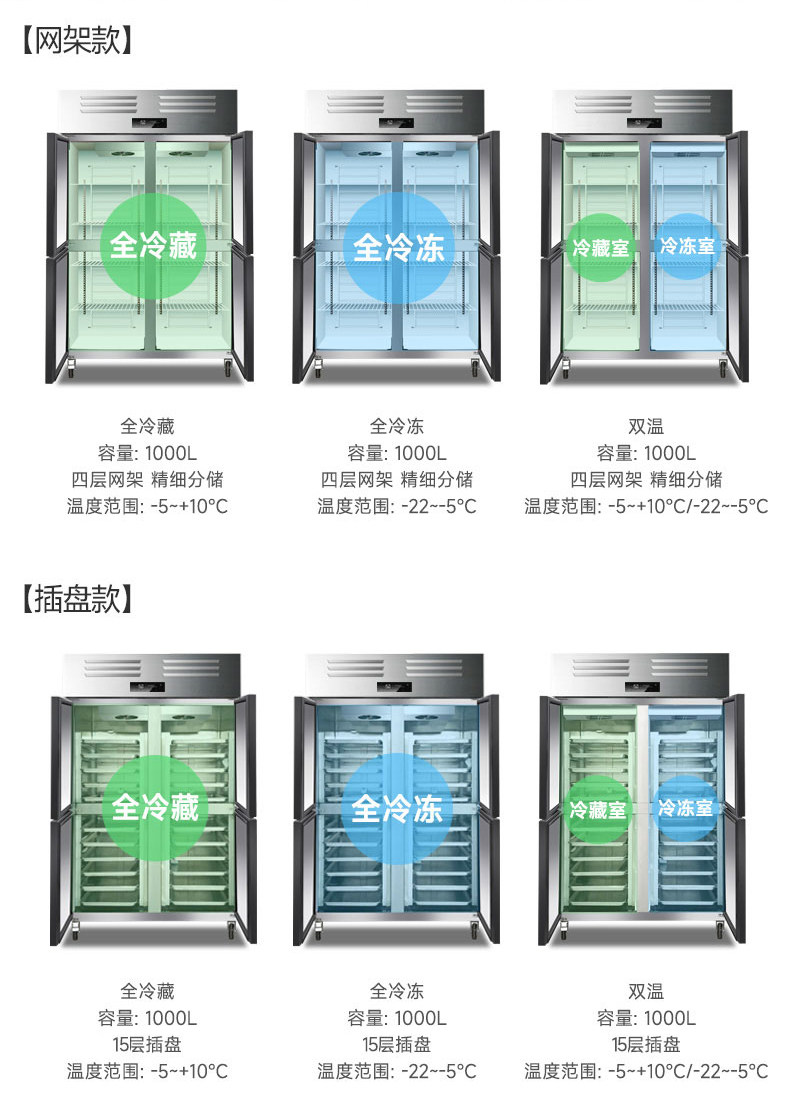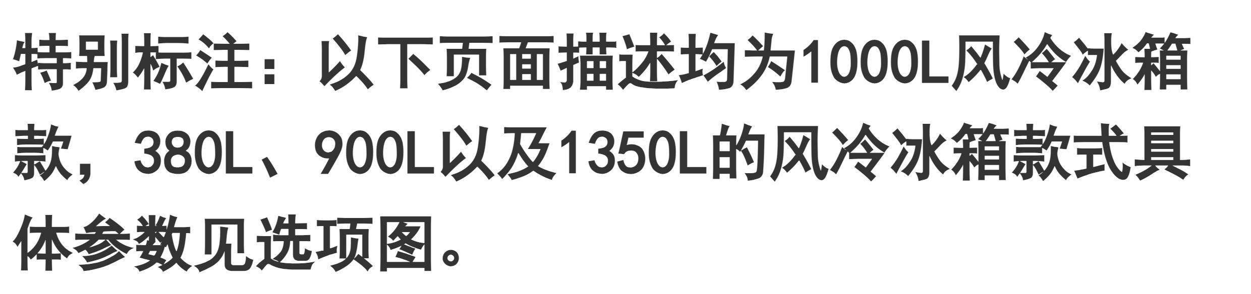 | Color Classification | Four-Door Refrigeration 900L [Air-Cooled and Frost-Free],Four-Door Freezer 900L [Air-Cooled and Frost-Free],Four-Door Dual-Temperature 900L [Air-Cooled and Frost-Free],Six-Door Refrigeration 1300L [Air-Cooled and Frost-Free],Six-Door Freezer 1300L [Air-Cooled and Frost-Free],Six-Door Dual-Temperature 1300L [Four Fresh and Two Frozen] [Air-Cooled and Frost-Free],Six-Door Dual-Temperature 1300L [Four Frozen and Two Fresh] [Air-Cooled and Frost-Free],Two-Door Refrigeration 380L [Air-Cooled and Frost-Free],Two-Door Freezer 380L [Air-Cooled and Frost-Free],Two-Door Dual-Temperature 380L [Air-Cooled and Frost-Free],Quick Freeze Upgraded Four-Door Refrigeration 1000L [Air-Cooled and Frost-Free],Quick Freeze Upgraded Four-Door Freezer 1000L [Air-Cooled and Frost-Free],Quick Freeze Upgraded Four-Door Dual-Temperature 1000L [Air-Cooled and Frost-Free],Four-Door Refrigerated Tray Model 1000L [Air-Cooled and Frost-Free] [Baking Tray],Four-Door Freezer Insert Model 1000L [Air-Cooled and Frost-Free] [Baking Insert],Four-Door Dual-Temperature Insert Tray Model 1000L [Air-Cooled and Frost-Free] [Baking Tray],Two-Door Refrigerated Tray Model 480L [Air-Cooled and Frost-Free],Two-Door Freezer Insert Model 480L [Air-Cooled and Frost-Free],Two-Door Dual-Temperature Plug-In Model 480L [Air-Cooled and Frost-Free] |