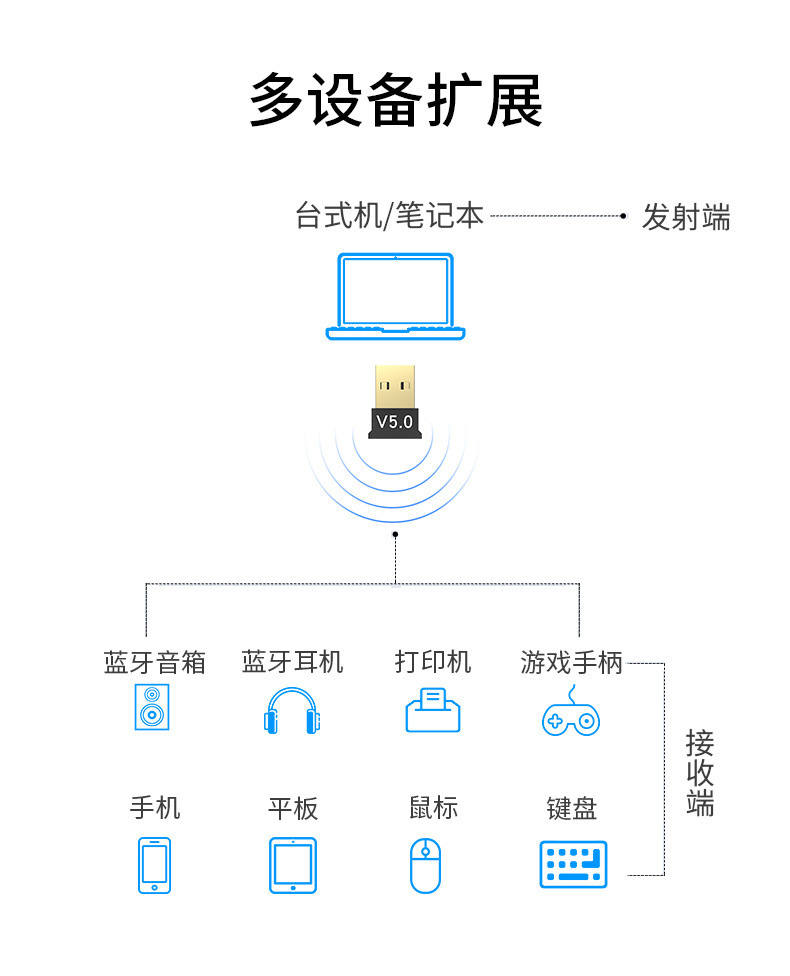 5.0 Bluetooth Adapter Computer USB Audio Wireless Receiver Headphone Keyboard Dedicated Transmitter