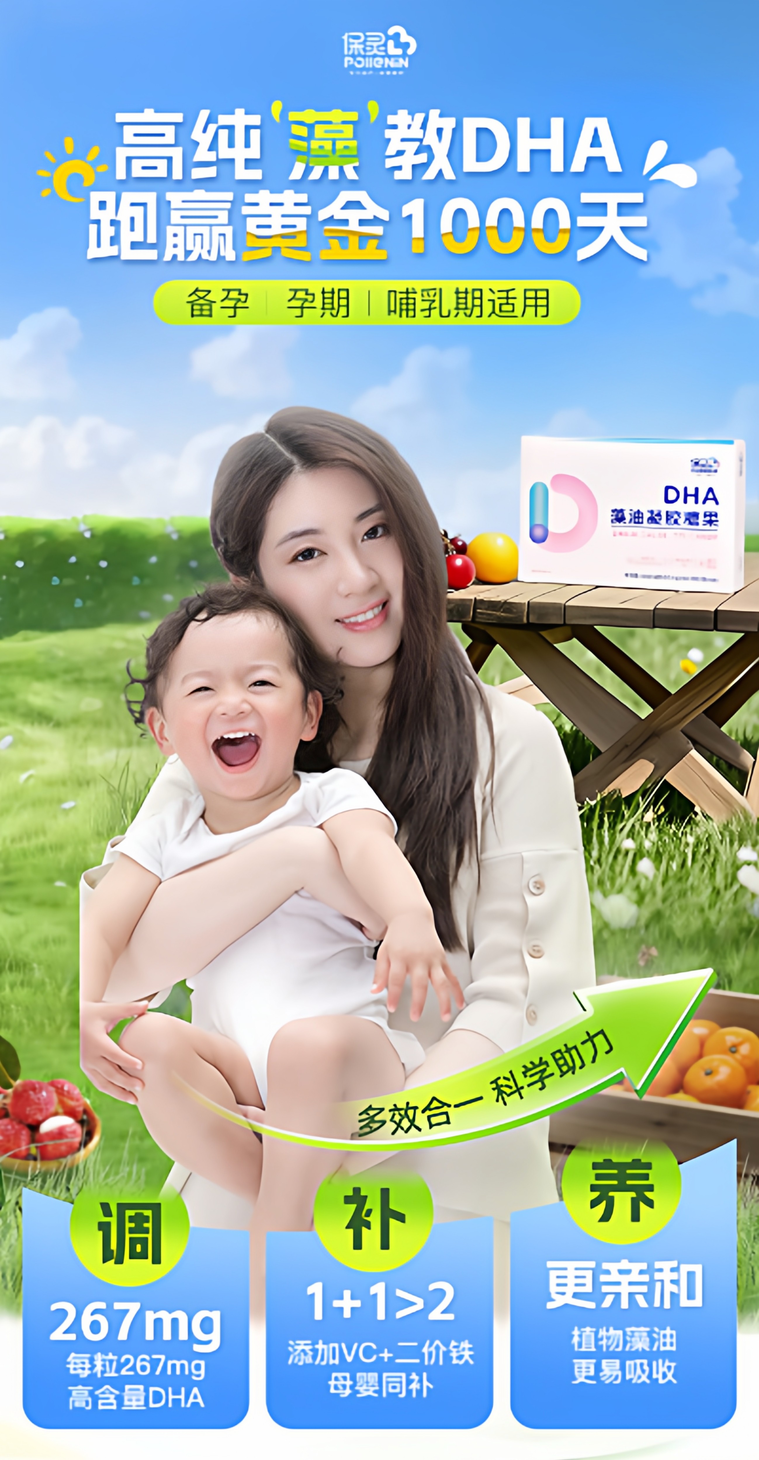 [Domestic Brand] Baoling Dha Special Seaweed Oil for Pregnant Women to Prepare for Pregnancy and Lactation Vitamin D Folic Acid Nutritional Supplements