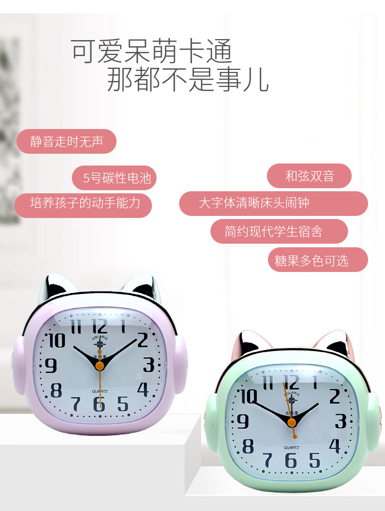 Genuine Polaris Alarm Clock for Children, Cute Cartoon Style, Personalized Bedroom Bedside Night Light, Silent Alarm Clock Specifically for Primary School Students