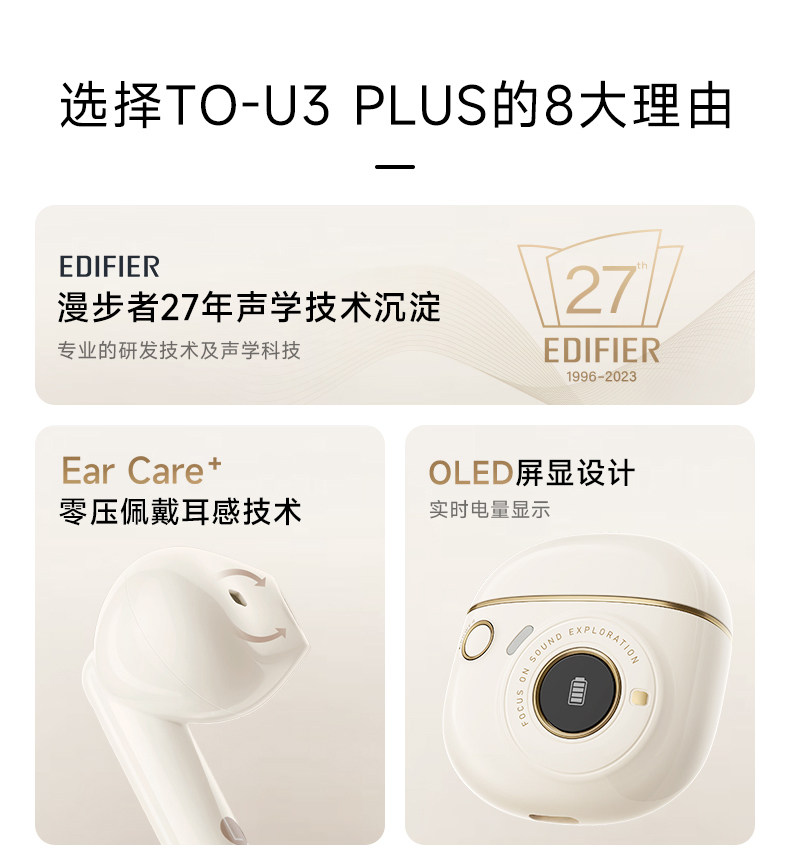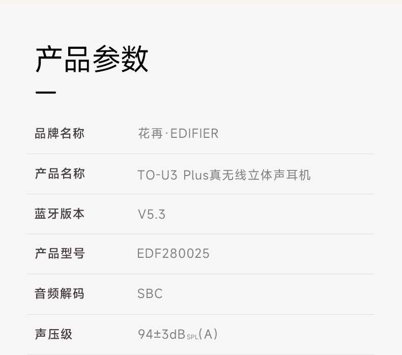 Edifier Semi-In-Ear True Wireless Bluetooth Headphones for Gaming, Calls, Noise Reduction, Gift for Boys and Girls To-U3 Plus