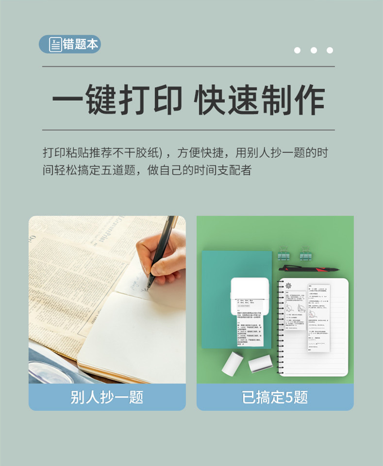 New Student Error Correction Printer, Small Household Mini Portable Pocket Error Correction Tool, Photo Thermal Printer