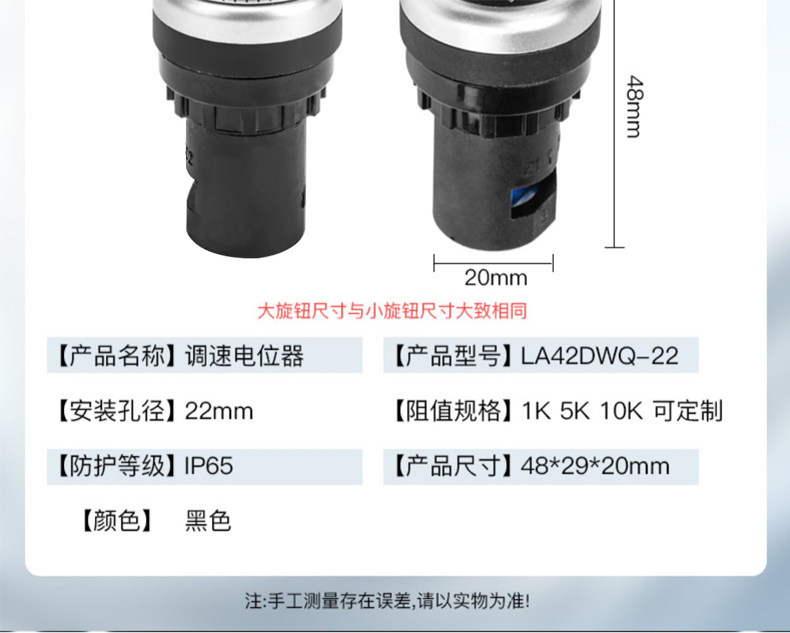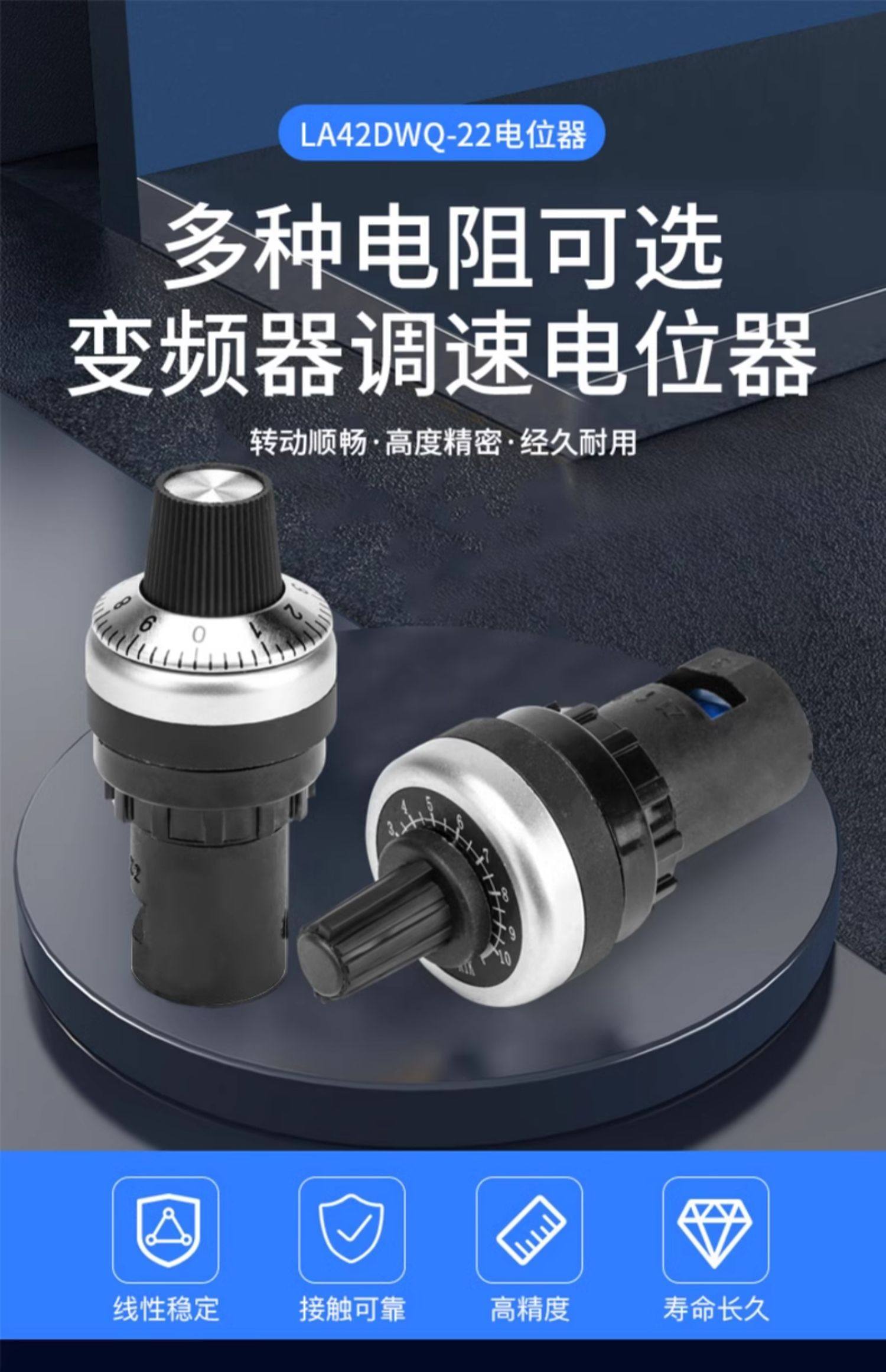22mm Frequency Converter Potentiometer with Cap High-Precision Knob La42Dwq-22 Precision Speed Control 1K 2K 5K