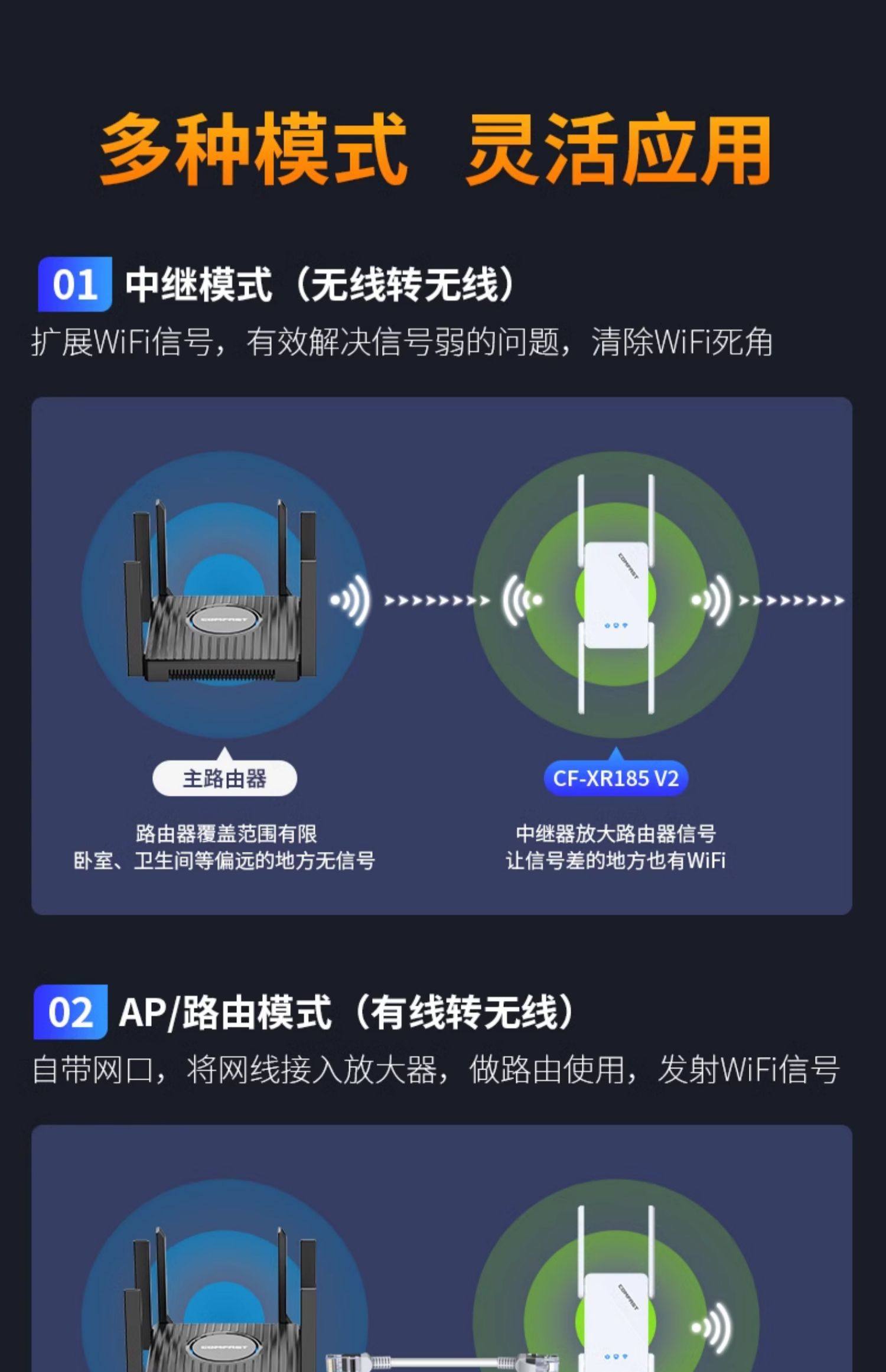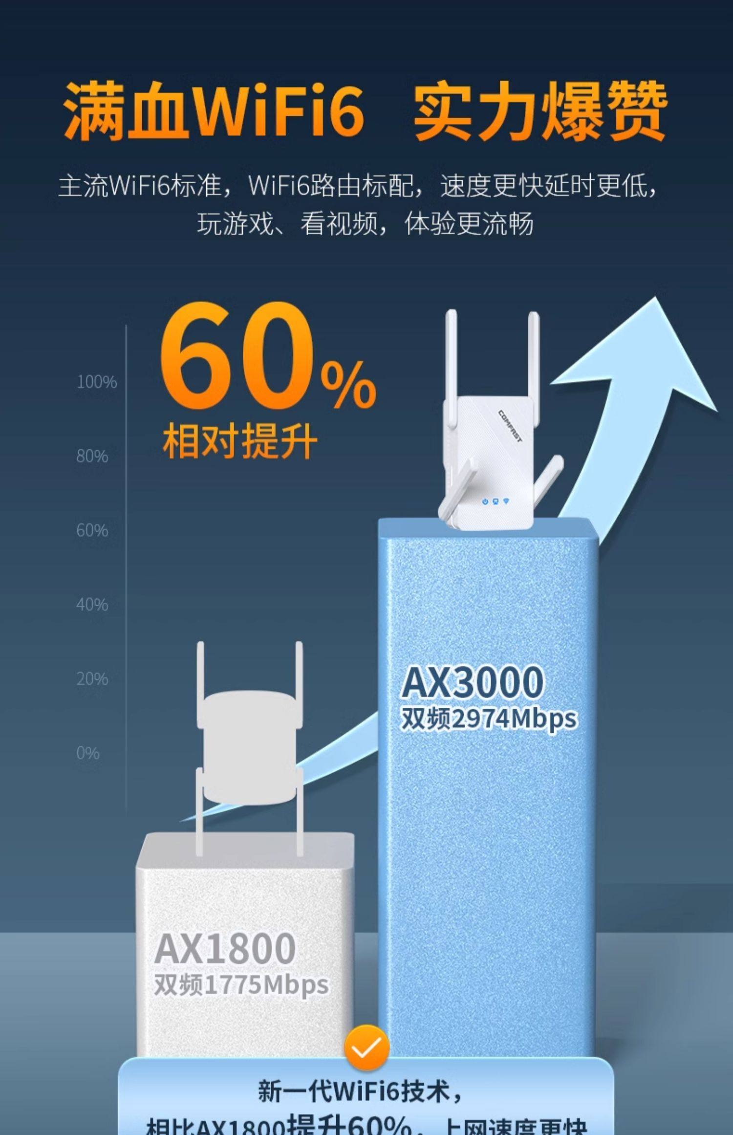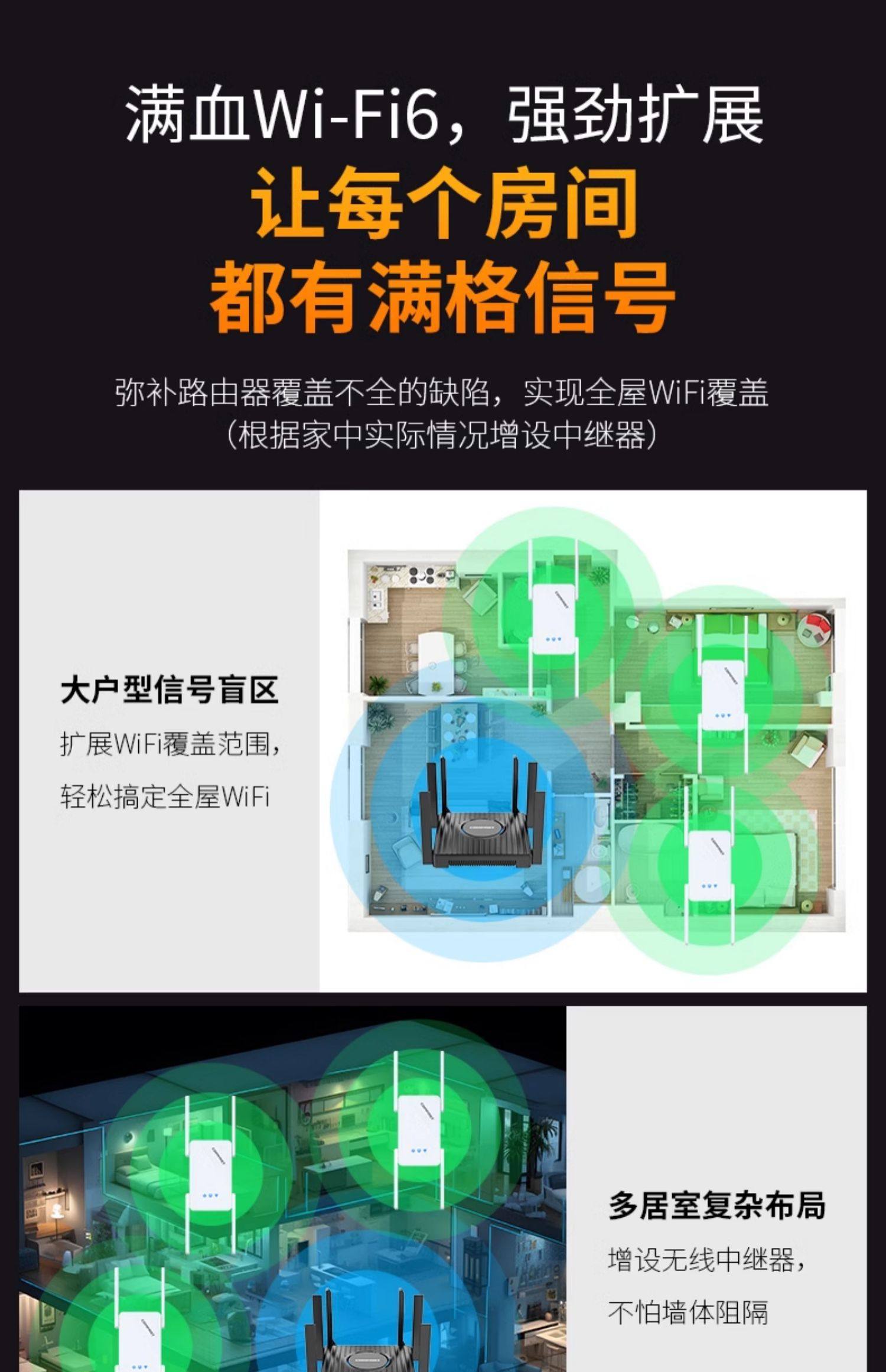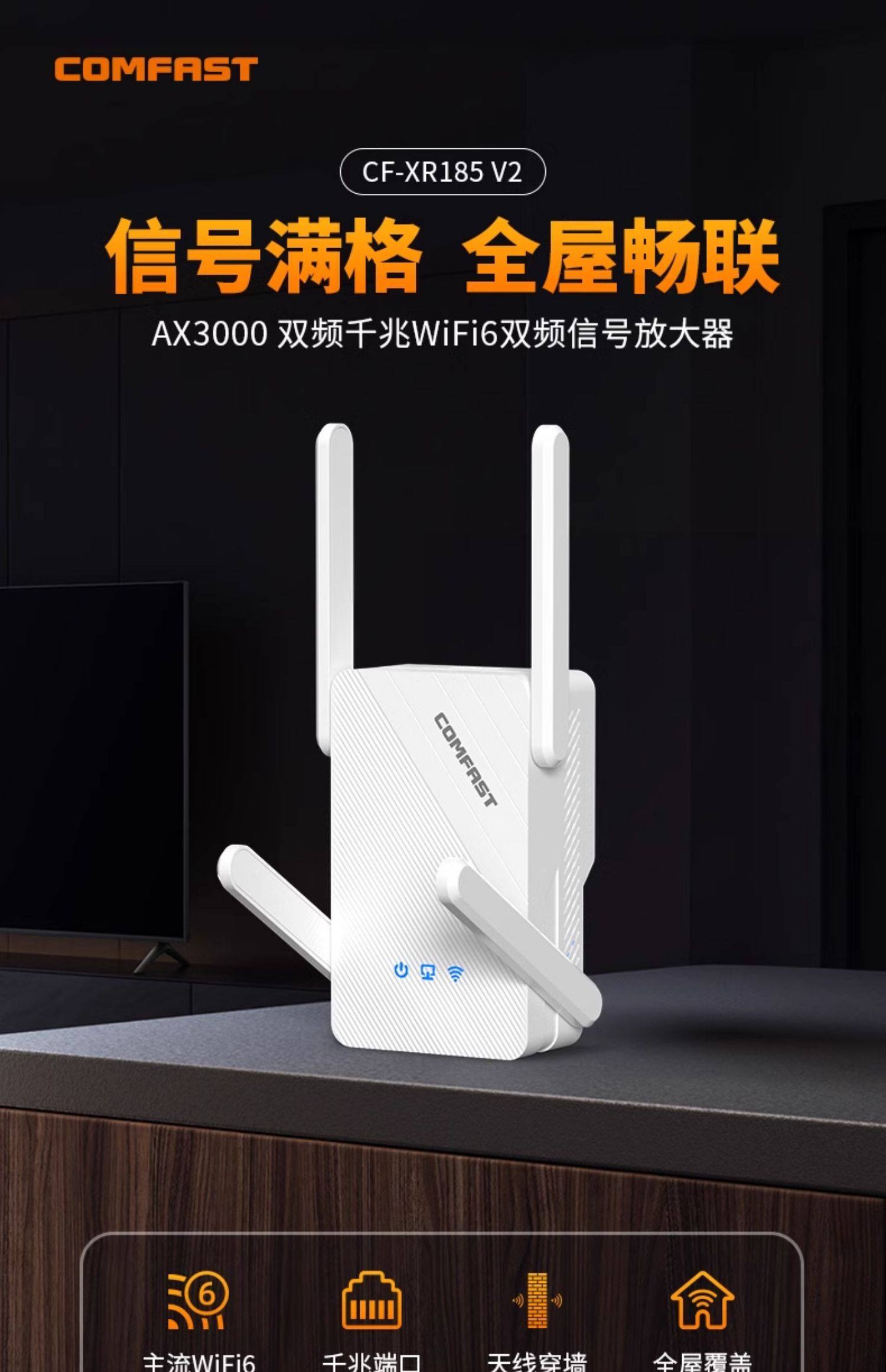 [3000M High Power]Comfast Wifi6 Signal Amplifier Dual-Band 5g Gigabit Wifi Signal Booster Amplifier Ax3000 Repeater Extender Router Through-Wall Cf-Xr185
