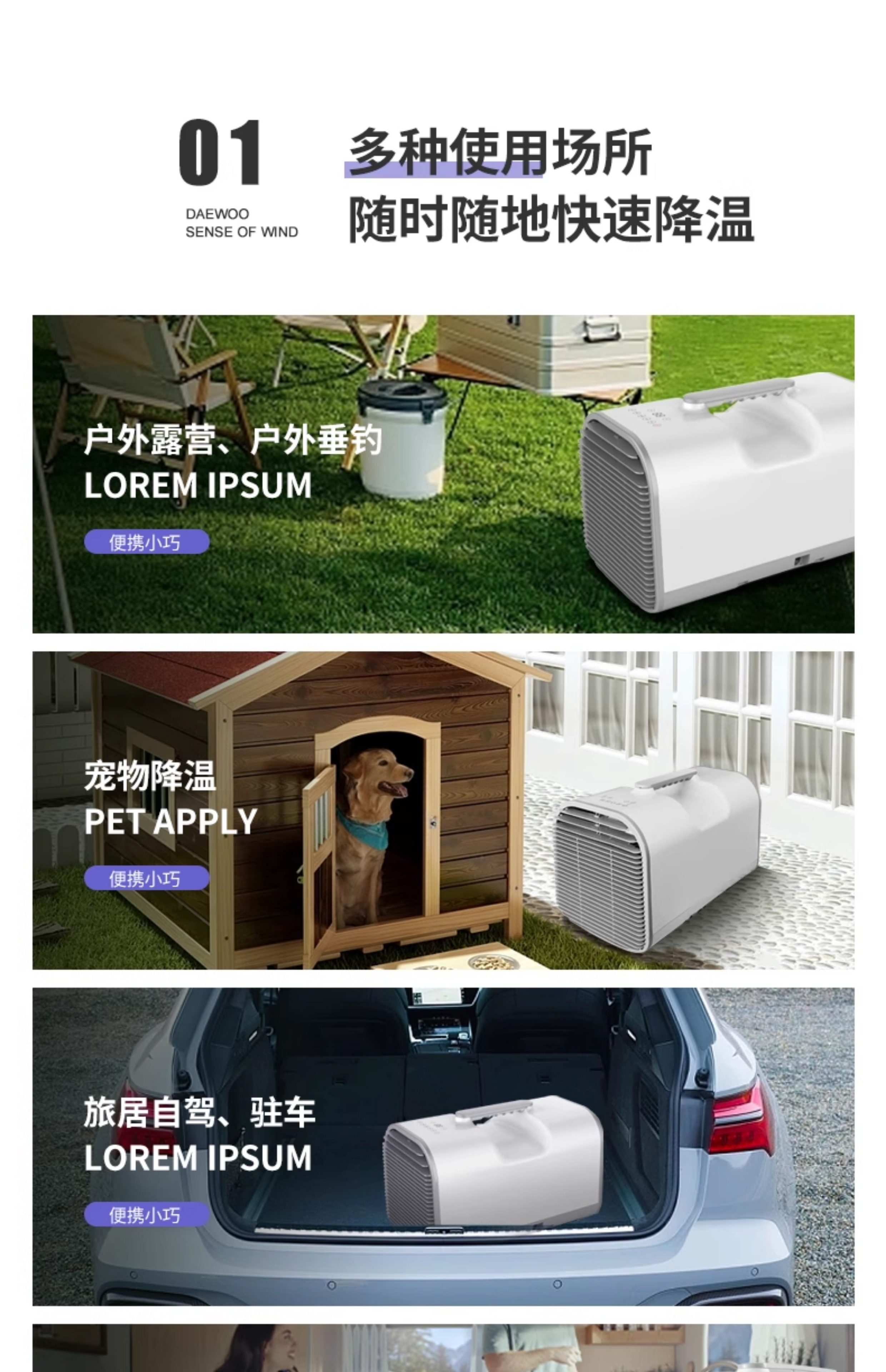 Car-Mounted Mobile Air Conditioner for Outdoor Camping Tents, Portable Mini Compressor Cooling, Single Cooling, No External Unit, Small Air Conditioner