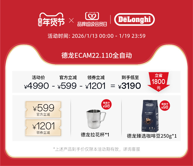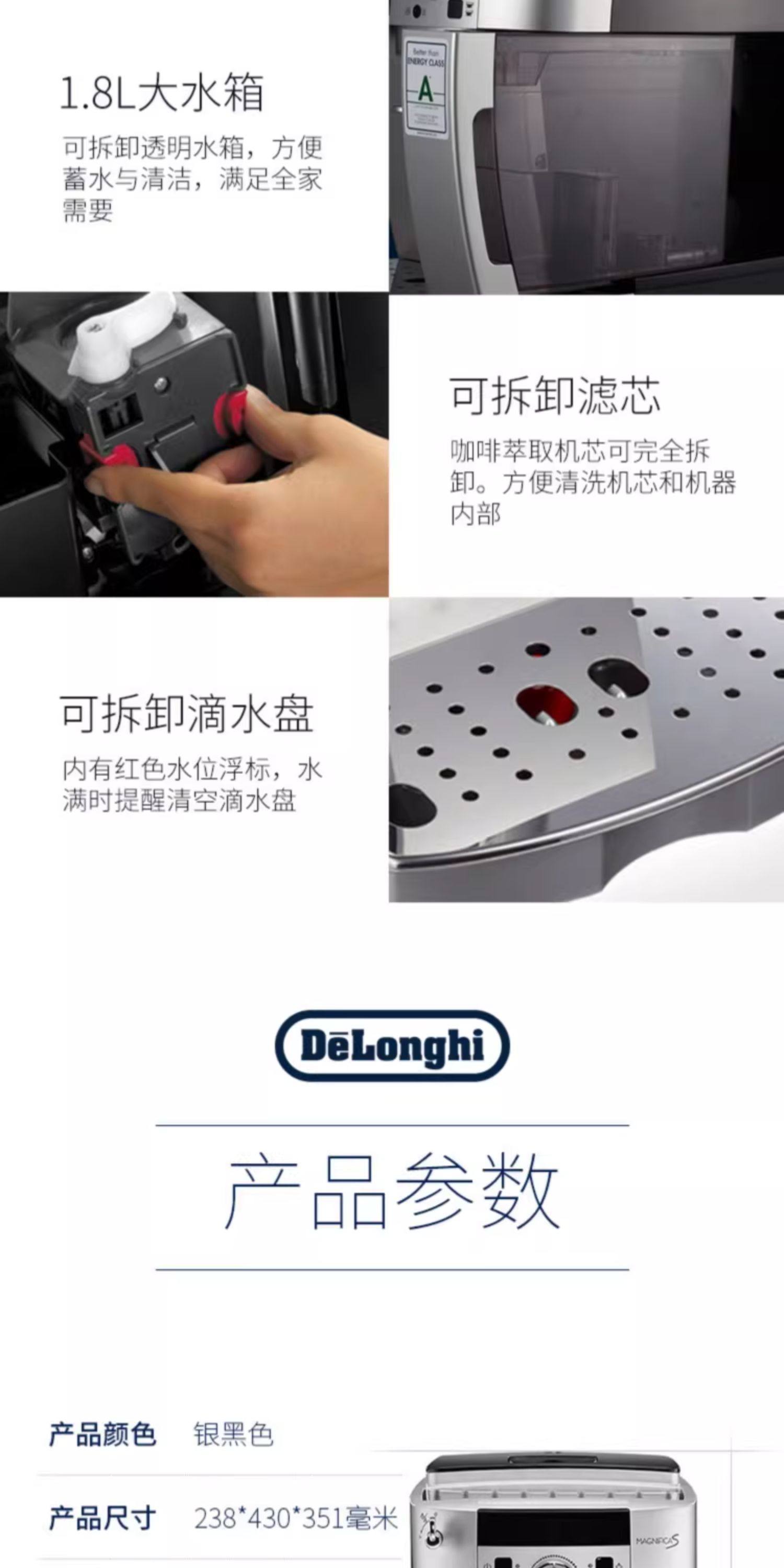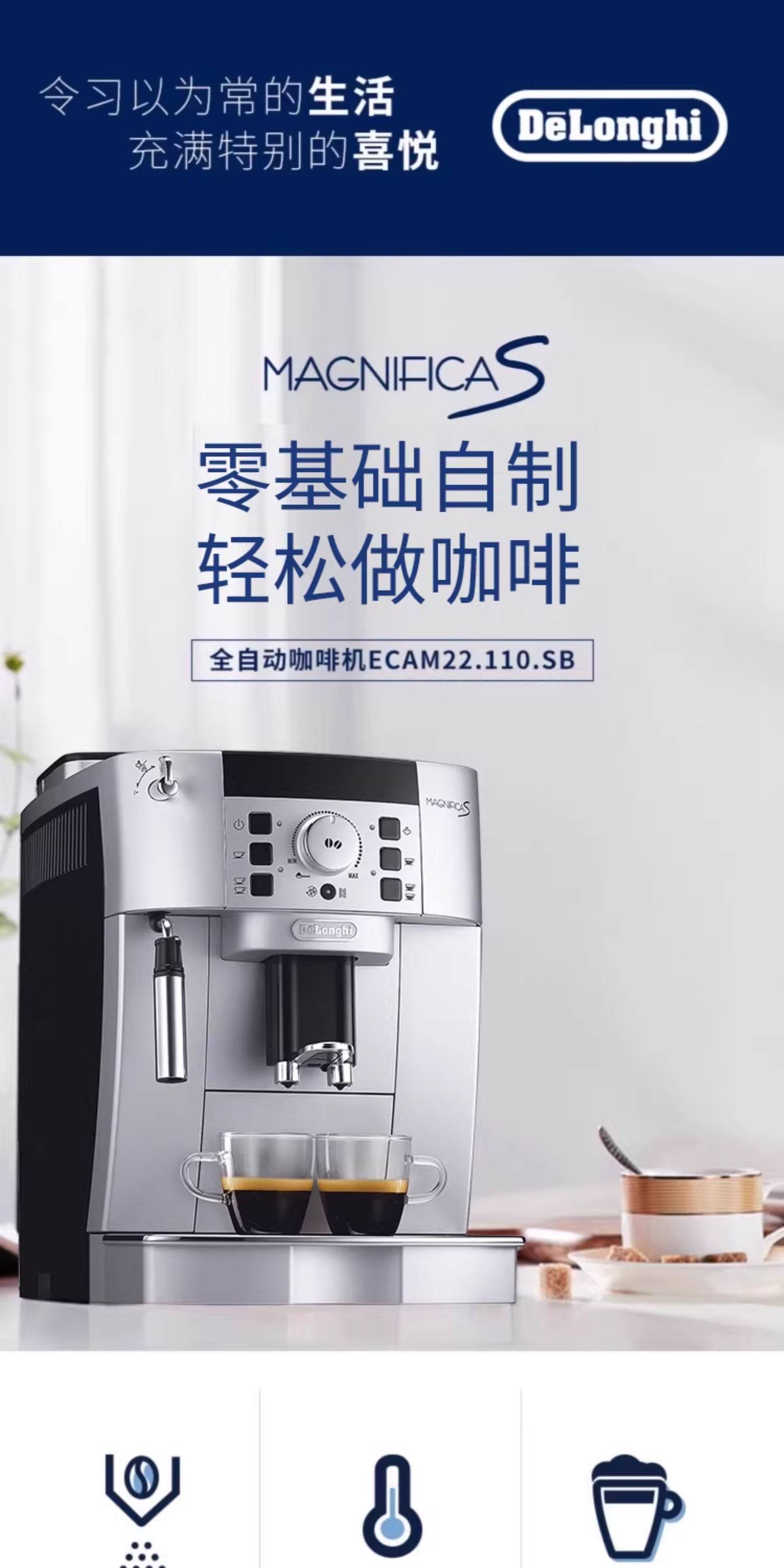 Delonghi Ecam22.110 Fully Automatic Coffee Machine Imported from Europe for Home and Office Use, Italian-Style Freshly Ground