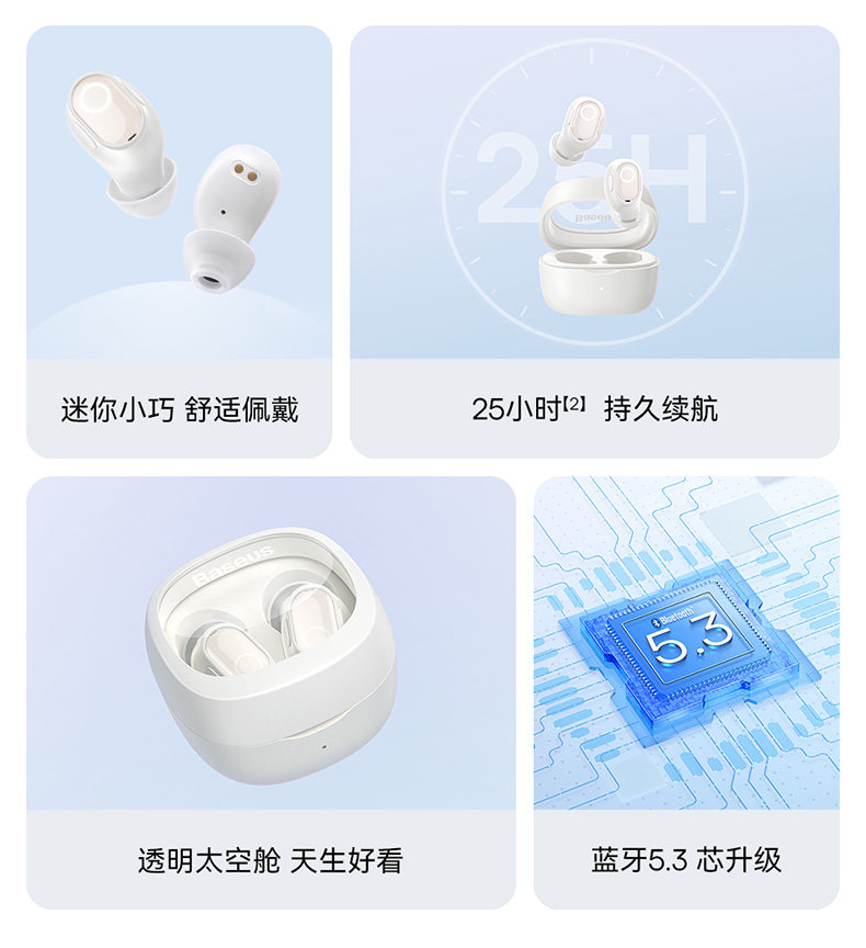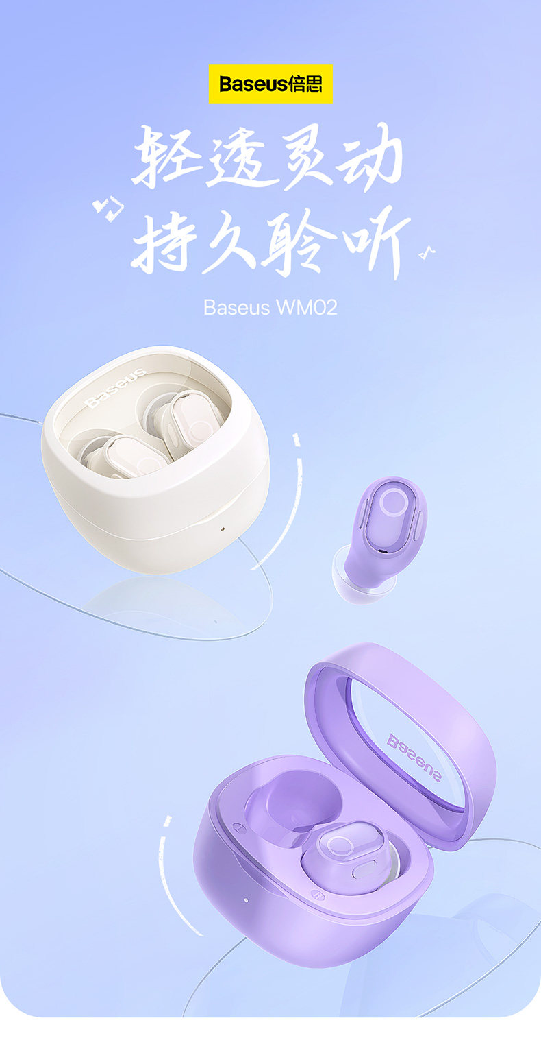 Baseus Wm02 Bluetooth Headset 2025 New Wireless High-Quality In-Ear Noise Reduction Sleep Sports Female Long Battery Life