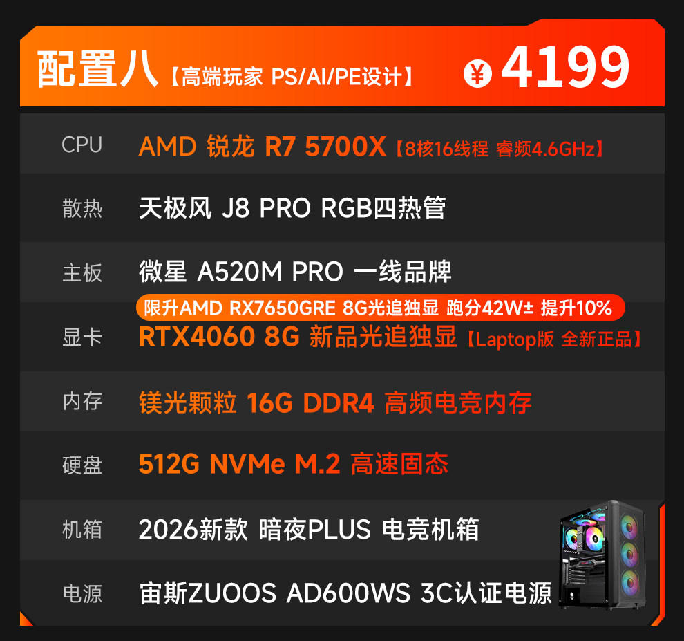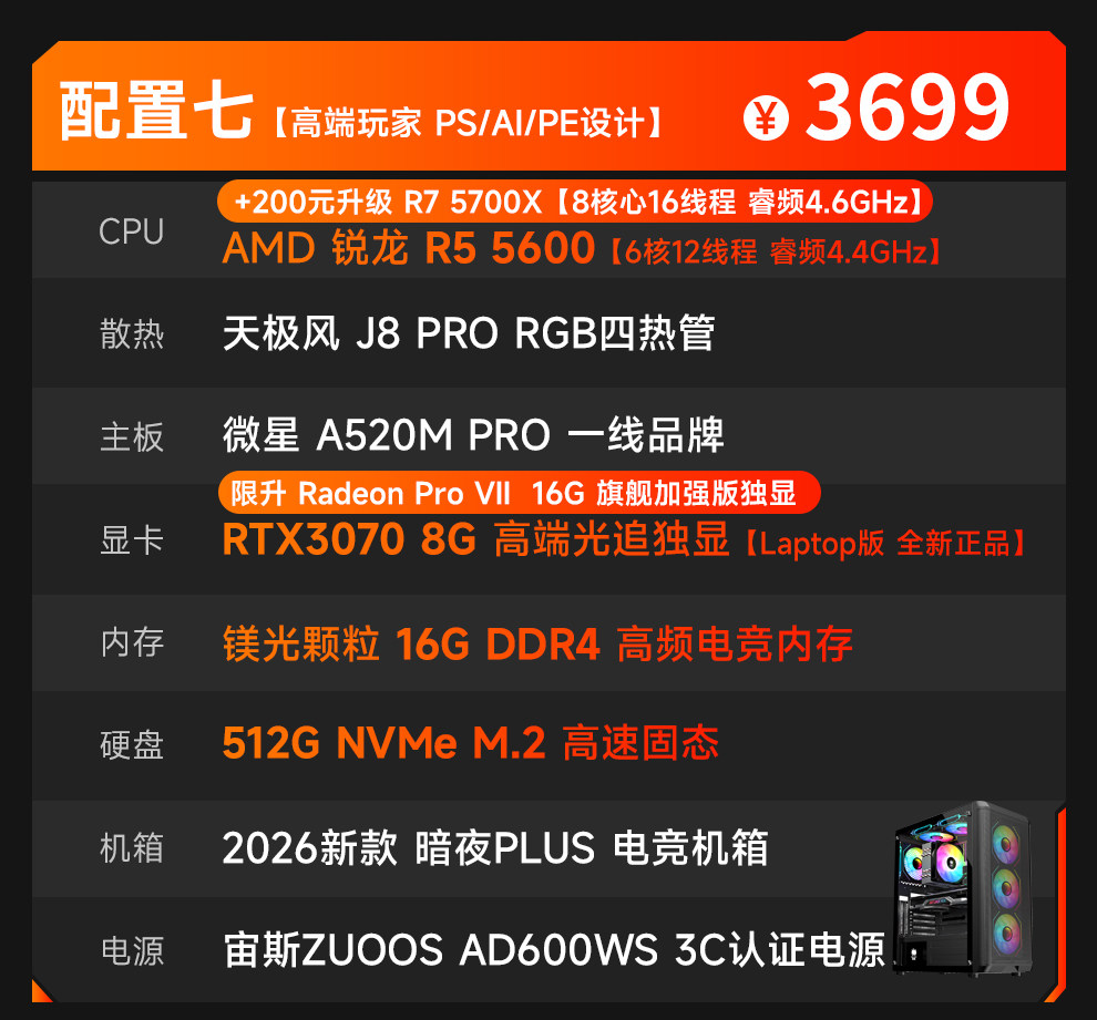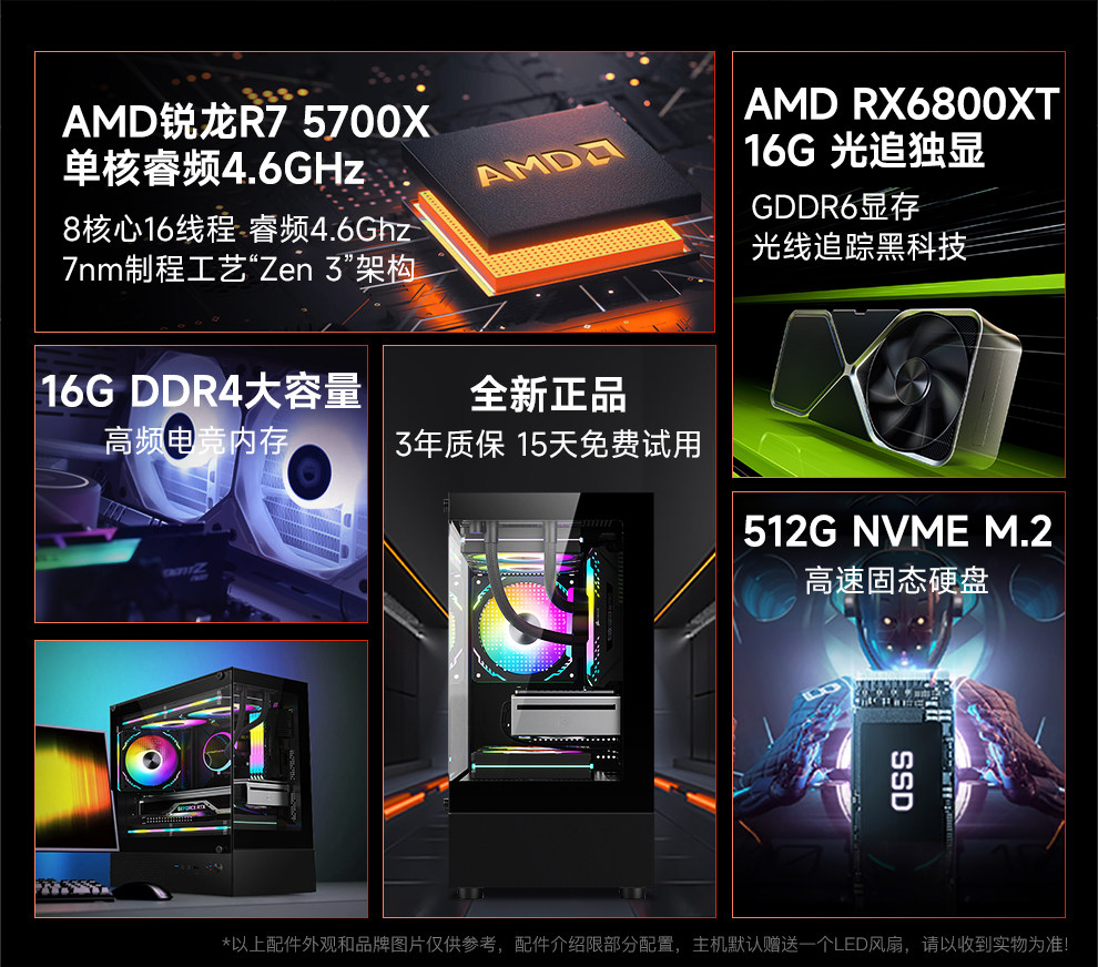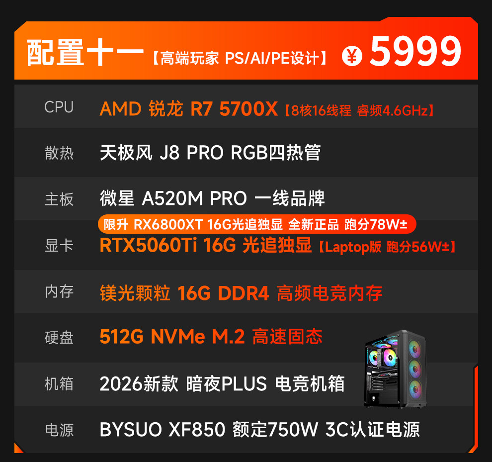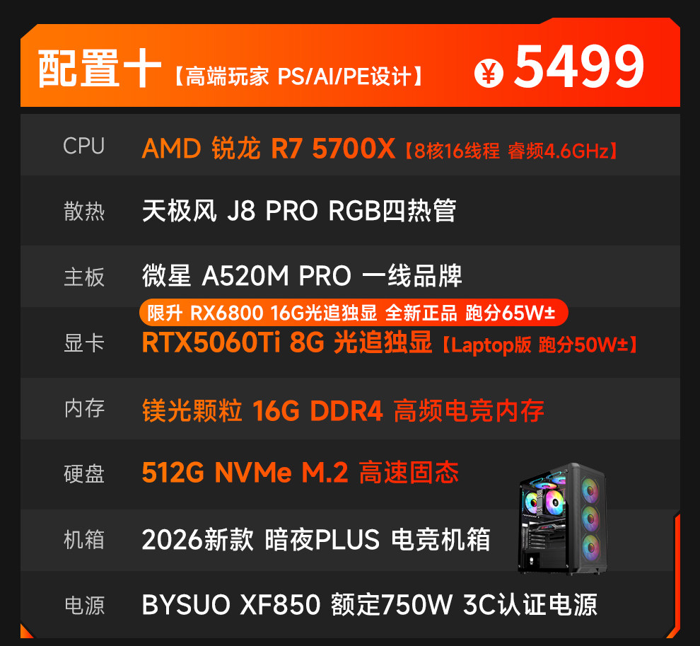 Msi Amd Ryzen R5 5600/R7 5700X/Rtx3060/4060/5060Ti Upgraded to Rx6800Xt Computer Desktop Office Gaming DIY Assembly Machine