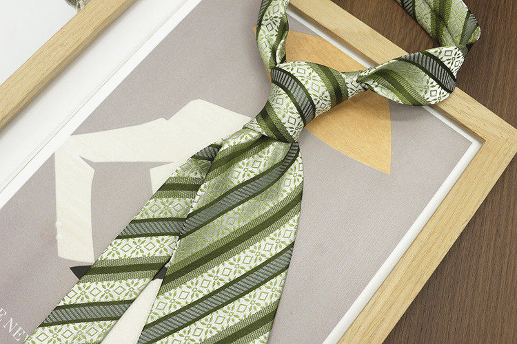 8cm Gentleman's Green and Brown Vintage Jacquard Patterned Tie for Formal Wear, Casual Wear, Work, Civil Servants, and Weddings