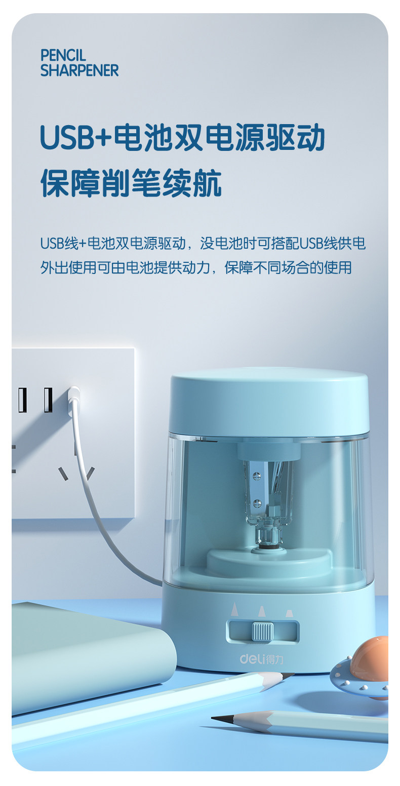 Deli Automatic Pencil Sharpener Electric Pencil Sharpener for Primary School Students Full Pencil Sharpener Dual Power Supply Pencil Sharpener Kindergarten Pencil Sharpener Kidsren's Stationery Pencil Sharpener Va3 Pencil Sharpener