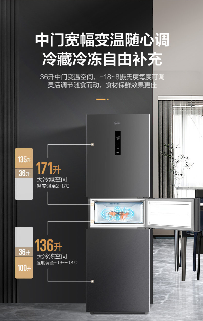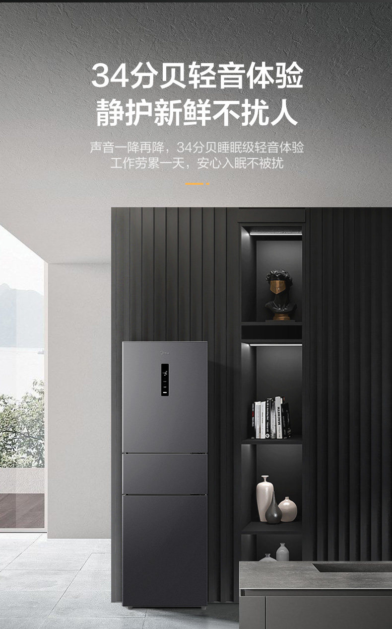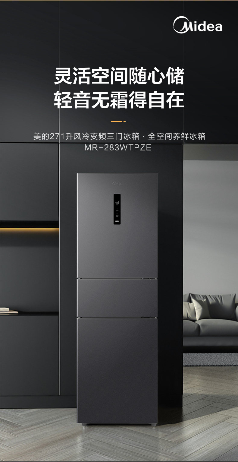 Midea 283 Three-Door Refrigerator, First-Class Energy Efficiency, Household Inverter, Frost-Free, Small and Ultra-Thin, Official Rental Model