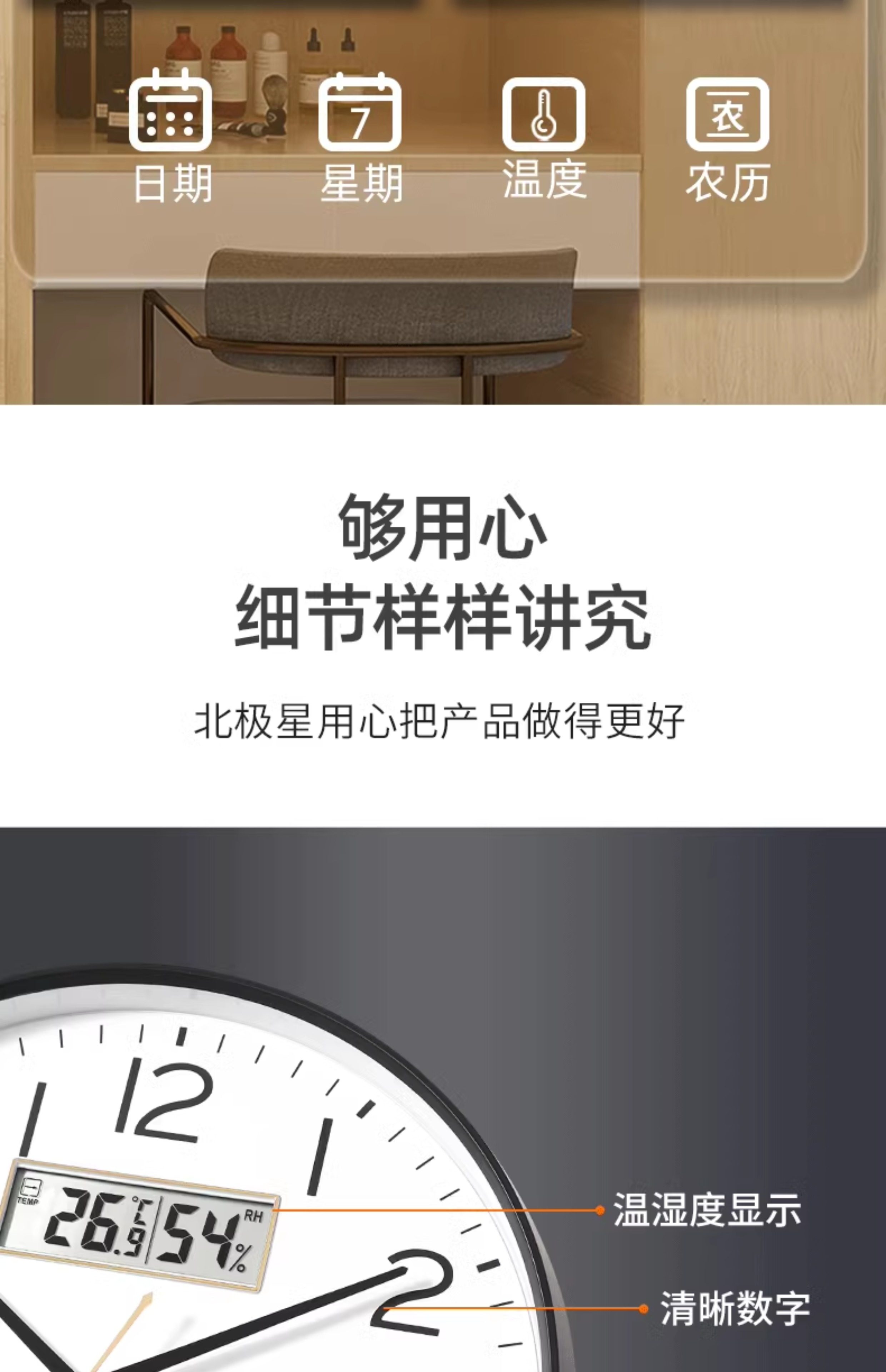 Polaris Clock Wall Clock for Living Room Home Use, Stylish and Creative, Silent, No-Drill Wall-Mounted, Simple Quartz Electronic Clock