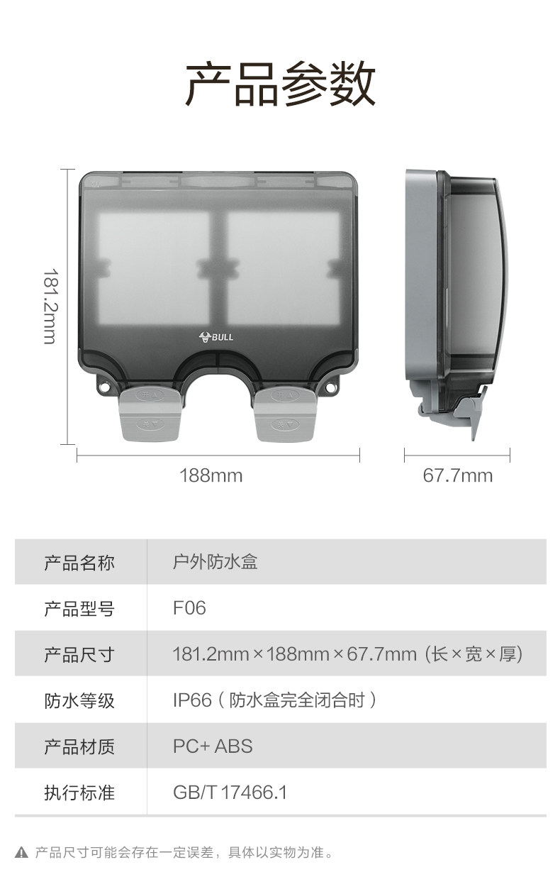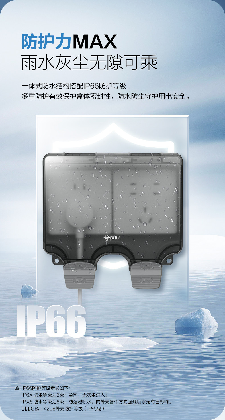 Bull Two-Position Waterproof Box Splash-Proof 2-Position Socket Outdoor Concealed Waterproof Protective Cover Box Cover Bathroom Ip66 Grade