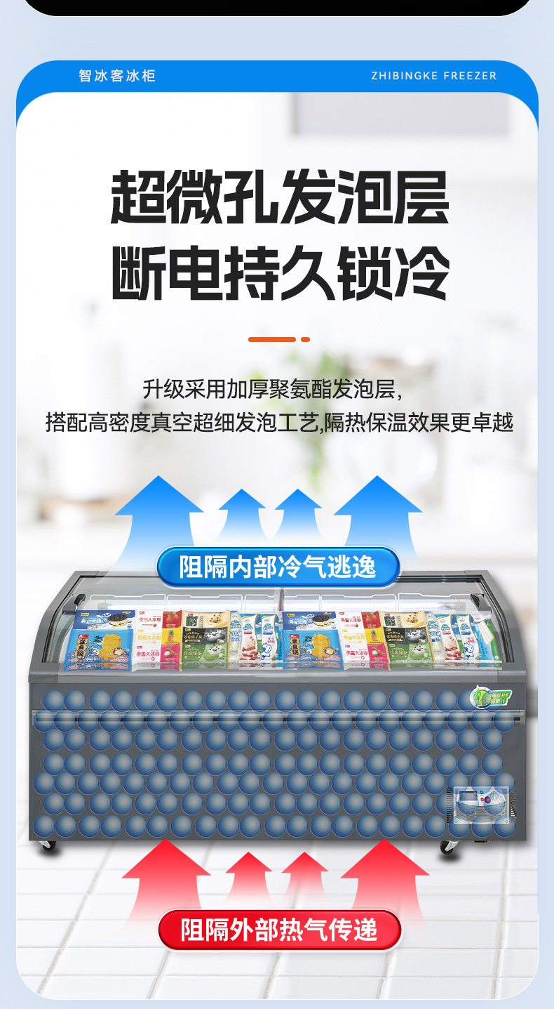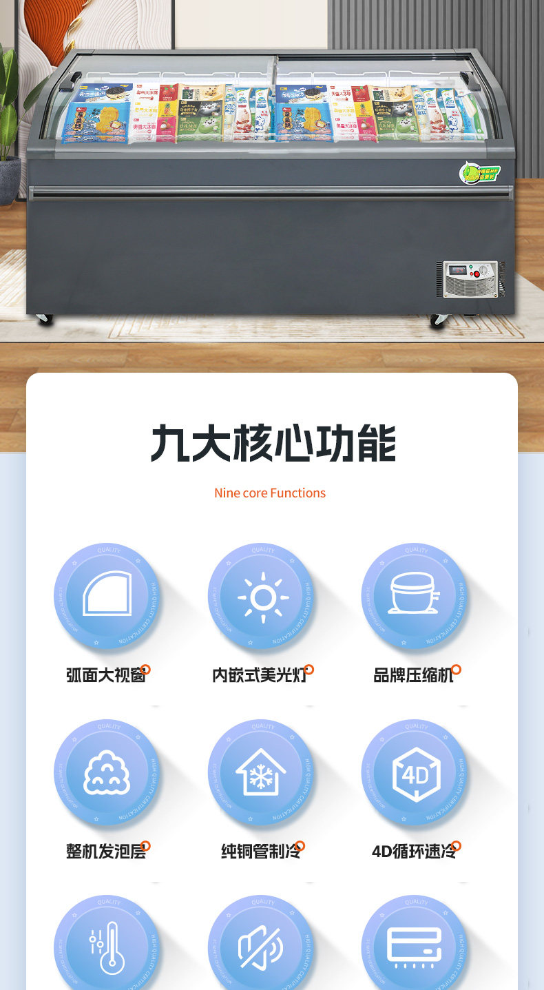 Curved Cabinet, Large-Capacity Horizontal Display Cabinet, Curved Glass Door, Commercial Freezer, Supermarket Refrigeration Freezer, Island Cabinet