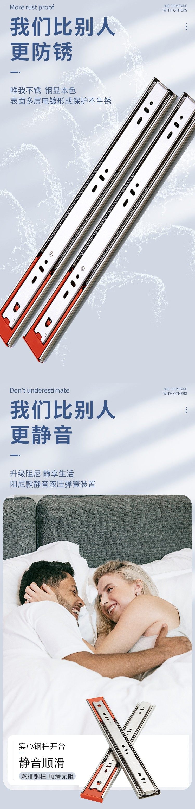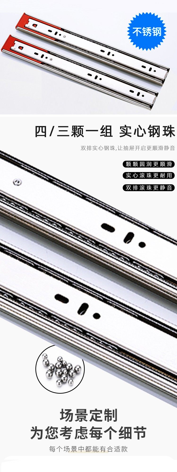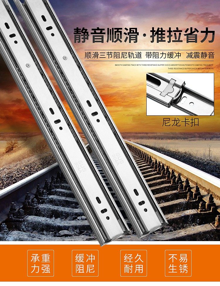 Thickened Stainless Steel Drawer Slide Three-Section Rail Household Damping Buffer Hydraulic Track Cabinet Silent Guide Rail 2024