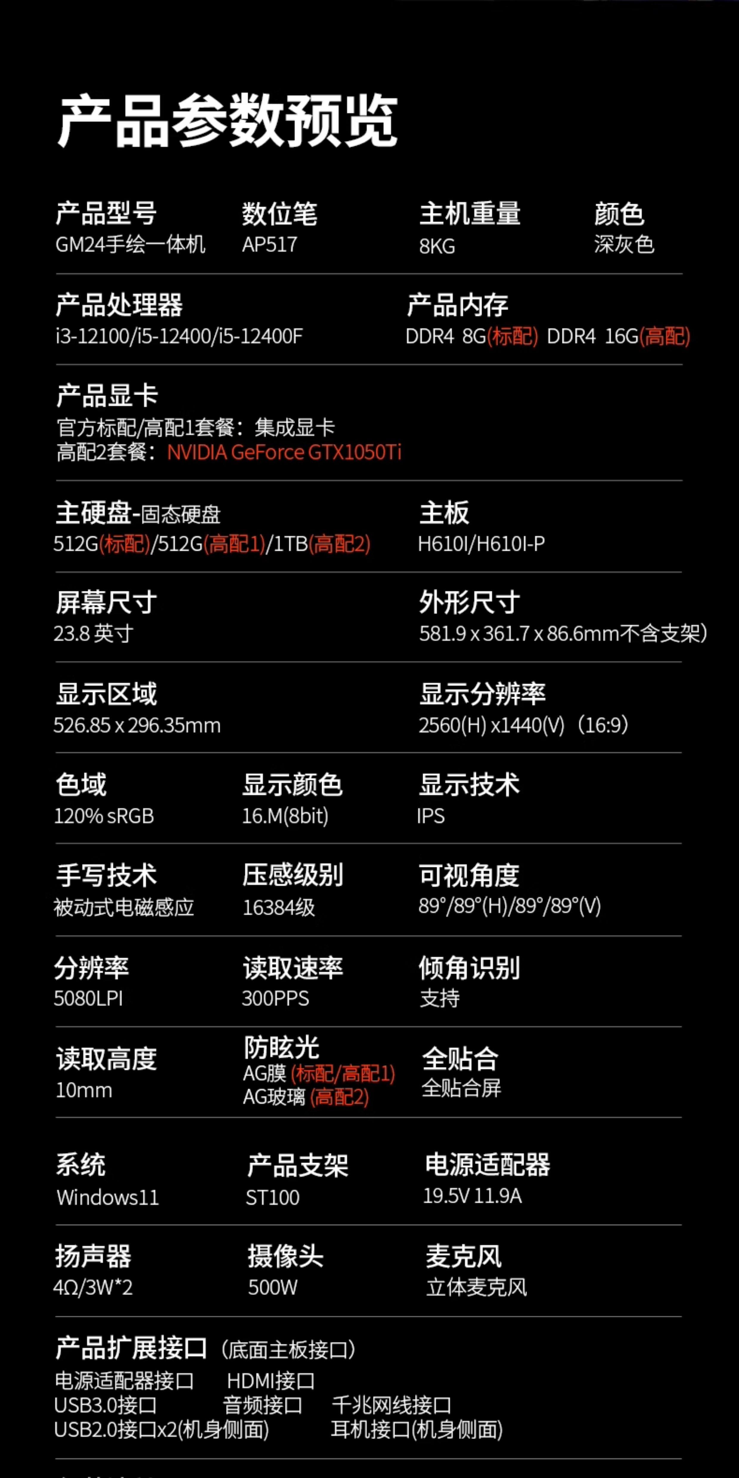 | Color Classification | Standard Configuration: I3+8G+512G,High Configuration 1:I5+16G+512G,High Configuration 2: I5+16G+1T+ Independent Graphics |