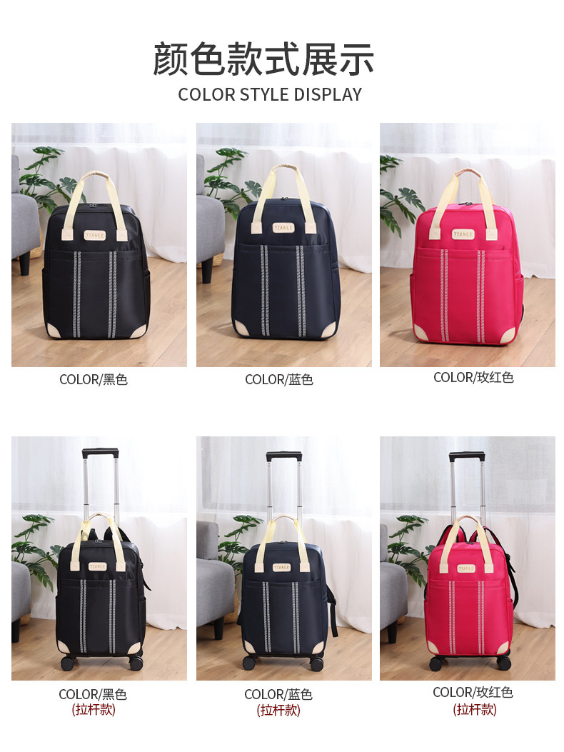| Color Classification | Black + Straps (with Pull Rod Wheels),Rose Red + Strap (with Pull Rod Wheels),Dark Blue + Straps (with Pull Rod Wheels),Black + Straps (Separate Bag, No Trolley Wheels),Rose Red + Strap (Separate Bag Without Pull Rod Wheels),Deep Blue + Straps (Separate Bag, No Trolley Wheels),Black Without Straps (with Pull Rod Wheels),Rose Red Without Straps (with Pull Rod Wheels),Deep Blue, Strapless (with Trolley Wheels),Black, Strapless (Individual Bag, No Trolley Wheels),Rose Red Without Straps (Separate Bag Without Pull Rod Wheels),Deep Blue, Strapless (Individual Bag, No Trolley Wheels) |