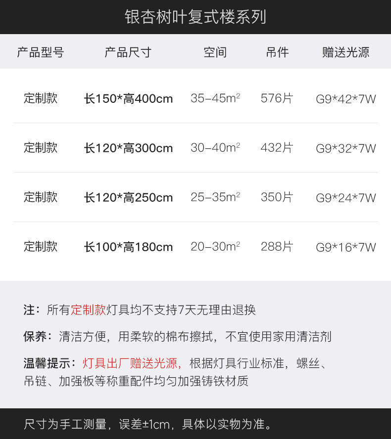 | Color Classification | 100_180cm Customized Model,120_250cm Customized Model,120_300cm Customized Model,150_400cm Customized Model,100_180cm Mezzanine Customized Model,120_300cm Mezzanine Customized Model,120_250cm Mezzanine Customized Model,150_400cm Mezzanine Customized Model,140_80cm Duplex Building Customized Model,80_200cm Staircase Customized Model,100_250cm Staircase Customized Model,120_300cm Staircase Customized Model,150_350cm Staircase Customized Model,Type B Plastic Porcelain Ginkgo Leaf 80_45_46cm,Type B Plastic Porcelain Ginkgo Leaf 100_40_42cm,Type B Plastic Porcelain Ginkgo Leaf 120_50_48cm,Type B Plastic Porcelain Ginkgo Leaf 125_46_48cm,Type B Plastic Porcelain Ginkgo Leaf 150_55_60cm,C Type Plastic Porcelain Ginkgo Leaf 150_60_68cm,C Type Plastic Porcelain Ginkgo Leaf 150_70_68cm,C Type Plastic Porcelain Ginkgo Leaf 180_55_60cm,C Type Plastic Porcelain Ginkgo Leaf 200_60_65cm,Type C Plastic Porcelain Ginkgo Leaf 200_70_68 cm,Type C Plastic Porcelain Ginkgo Leaf 200 100_90cm,C Type Plastic Porcelain Ginkgo Leaf 220_60_65cm,C Type Plastic Porcelain Ginkgo Leaf 220_90_70cm,C Type Plastic Porcelain Ginkgo Leaf 250_65_65cm,C Type Plastic Porcelain Ginkgo Leaf 300_70_70cm,C Type Plastic Porcelain Ginkgo Leaf 400_75_75cm,C Type Plastic Porcelain Ginkgo Leaf 500_80_80cm,Bedroom Style Plastic Porcelain Ginkgo Leaf 80_35cm,Bedroom Style Plastic Porcelain Ginkgo Leaf 100_35cm,Bedroom Style Plastic Porcelain Ginkgo Leaf 120_35cm,100_180cm Customized Model,120_250cm Customized Model,120_300cm Customized Model,【150_400Cm】 Custom Cutout Design,Electroplated Gold + Brown Glass [L100*H180Cm],Electroplated Gold + Brown Glass [L120*H250Cm],Electroplated Gold + Brown Glass [L120*H300Cm],Electroplated Gold + Brown Glass [L150*H400Cm],Electroplated Gold + Green Glass [L100*H180Cm],Electroplated Gold + Green Glass [L120*H250Cm],Electroplated Gold + Green Glass [L120*H300Cm],Electroplated Gold + Green Glass [L150*H400Cm] |