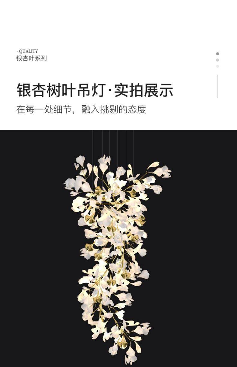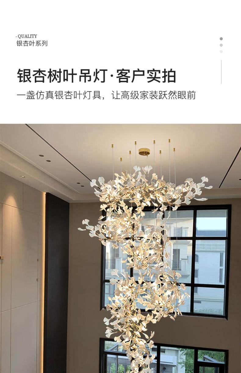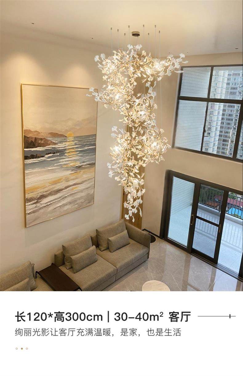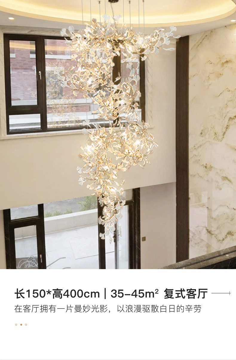 Large Chandelier for Duplex Loft Staircase Lighting, Light Luxury Villa Open-Air Mezzanine Living Room Lobby Sales Office Ginkgo Leaf Lamp