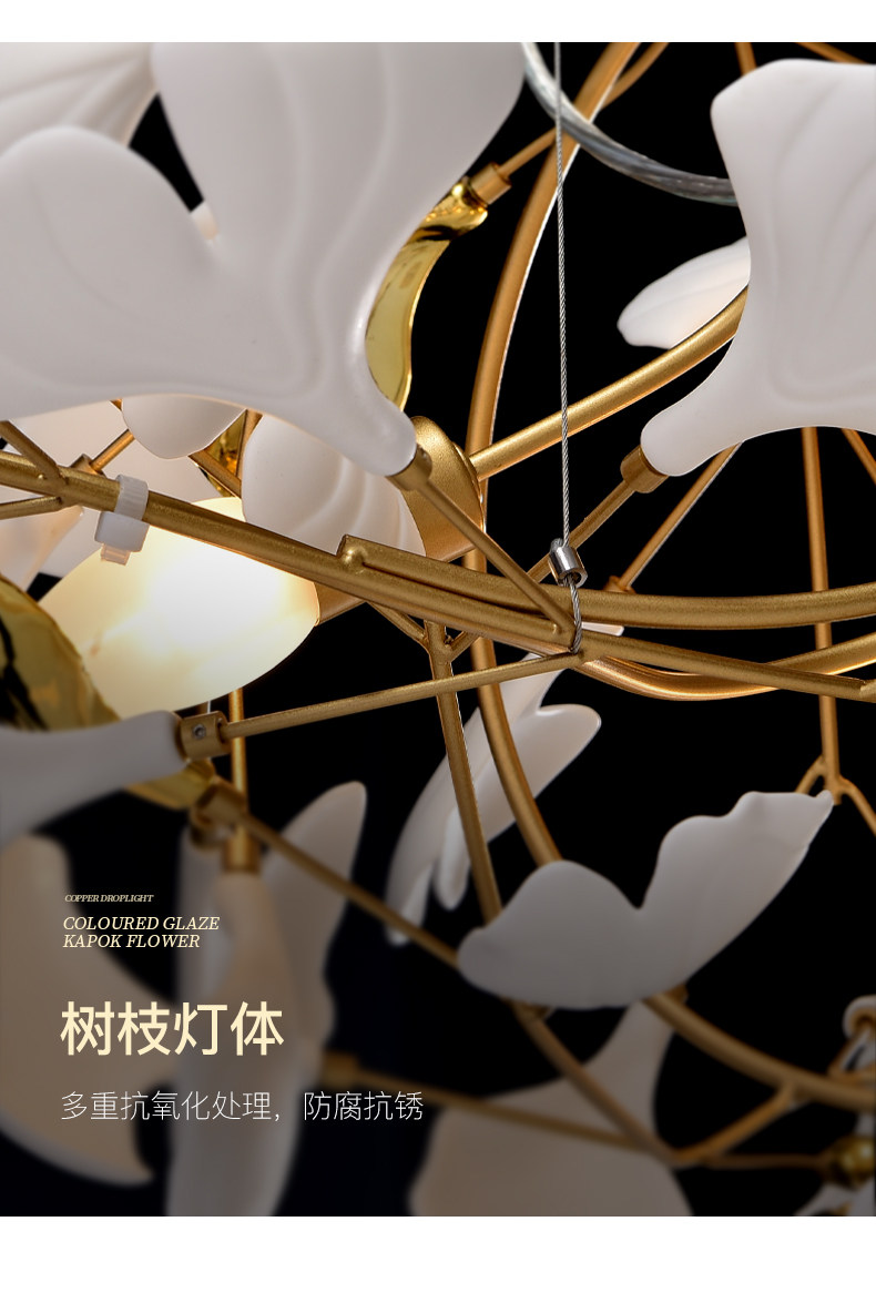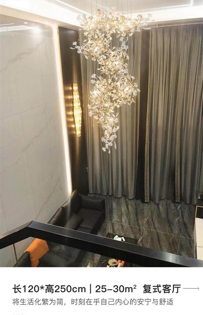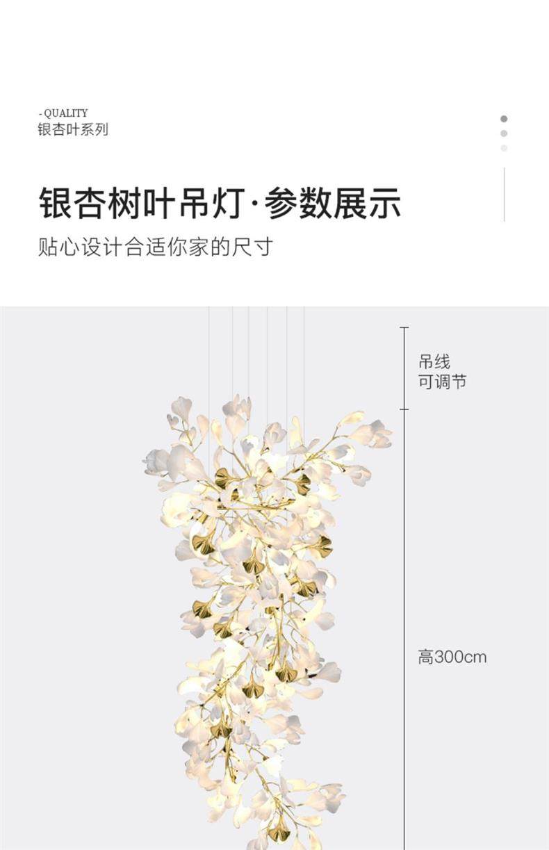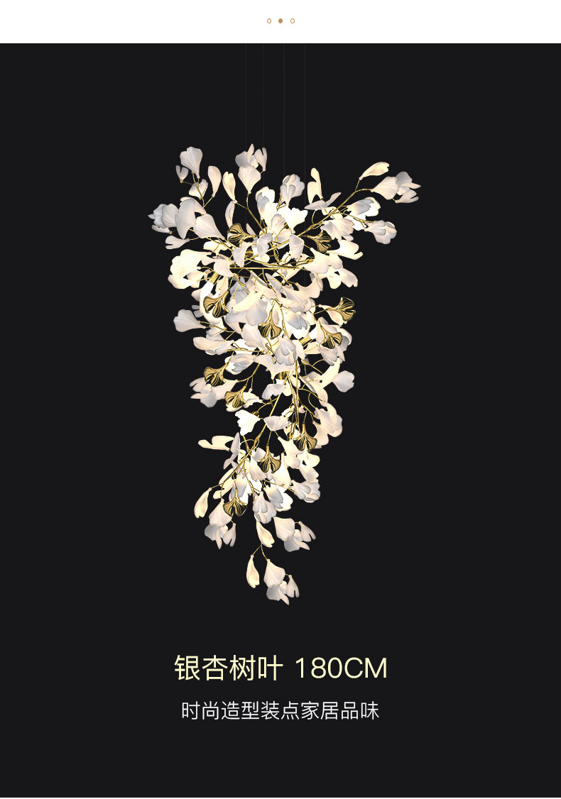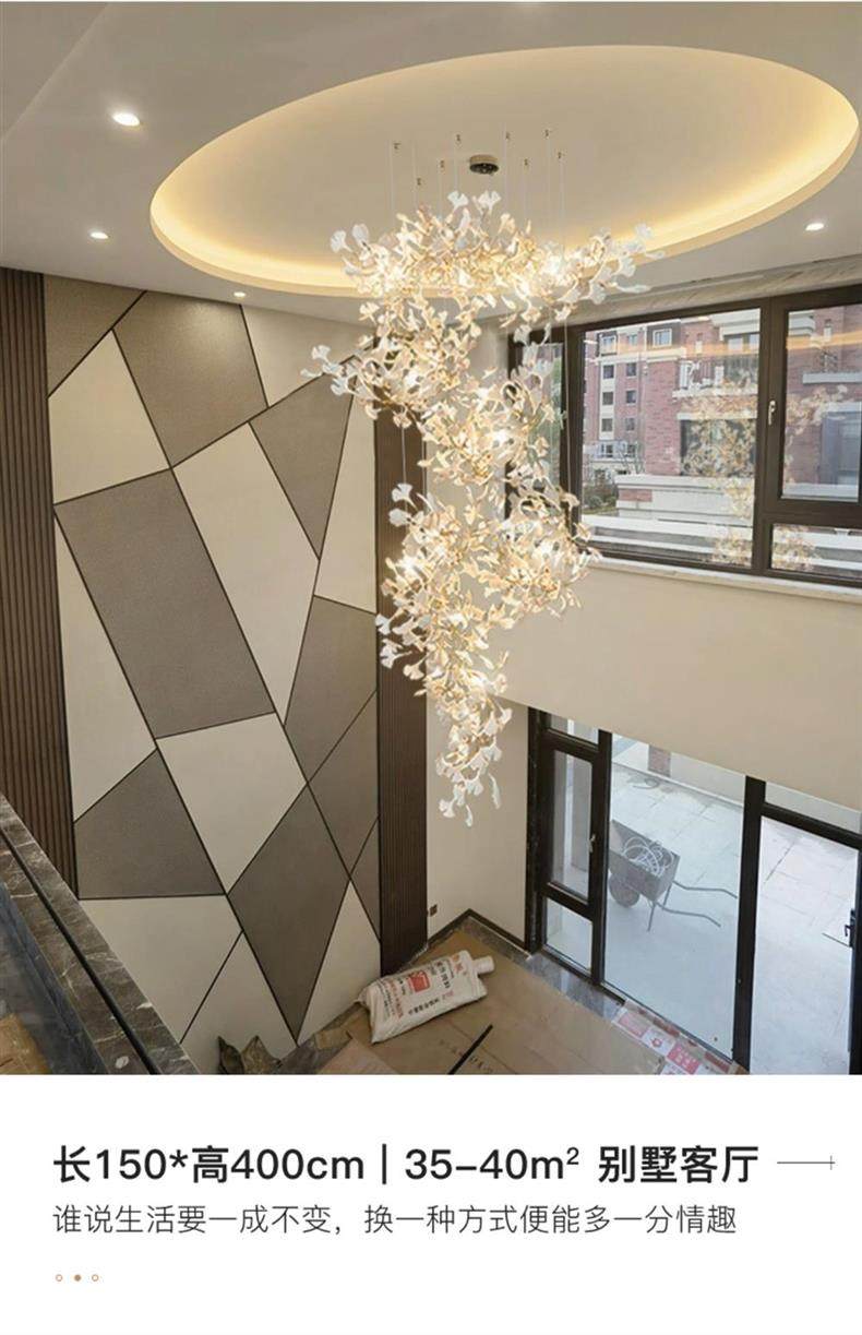 Large Chandelier for Duplex Loft Staircase Lighting, Light Luxury Villa Open-Air Mezzanine Living Room Lobby Sales Office Ginkgo Leaf Lamp