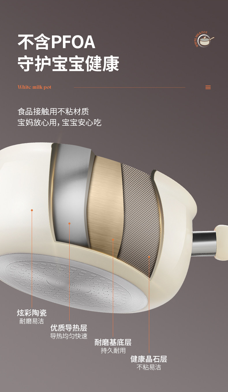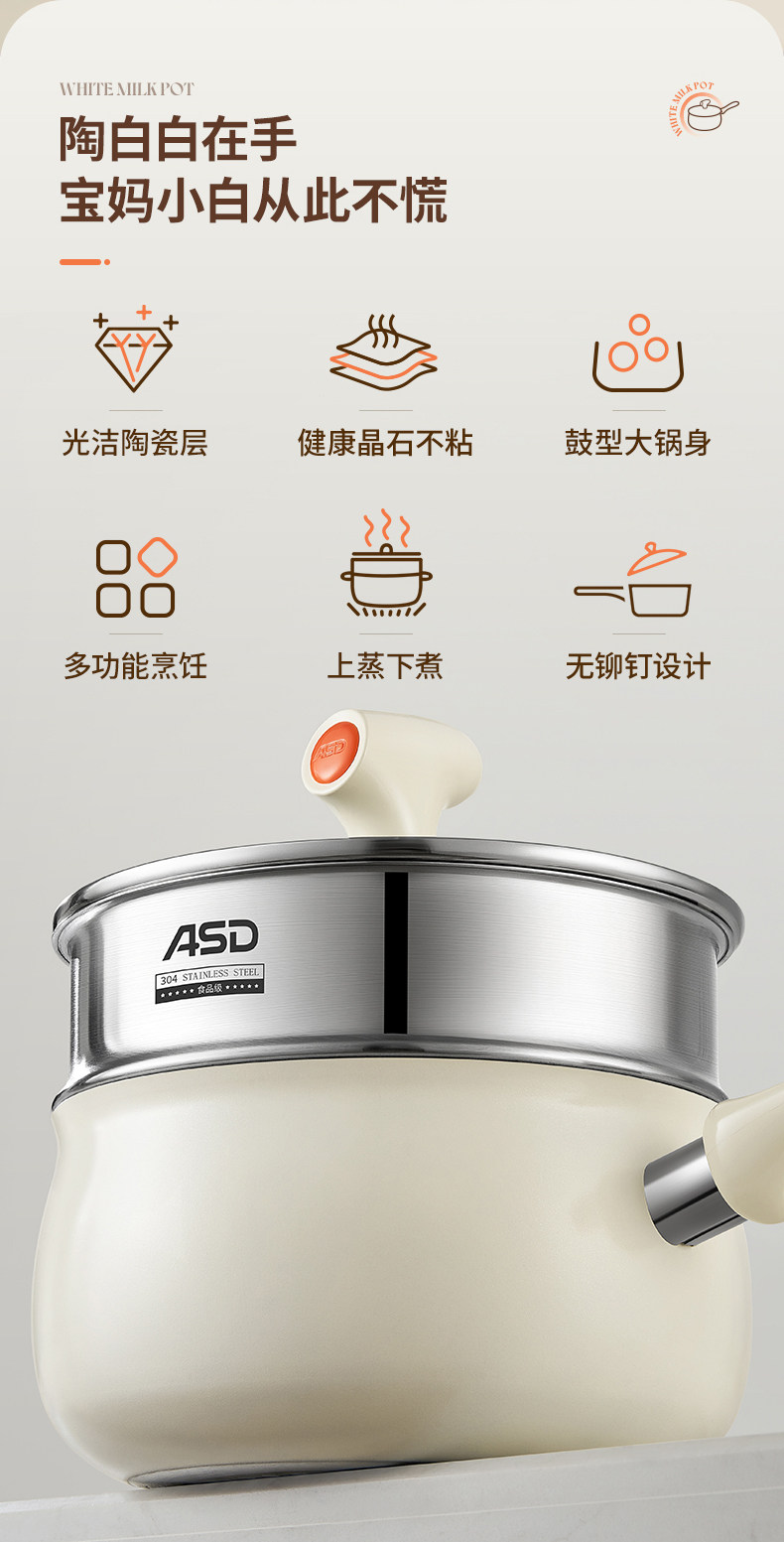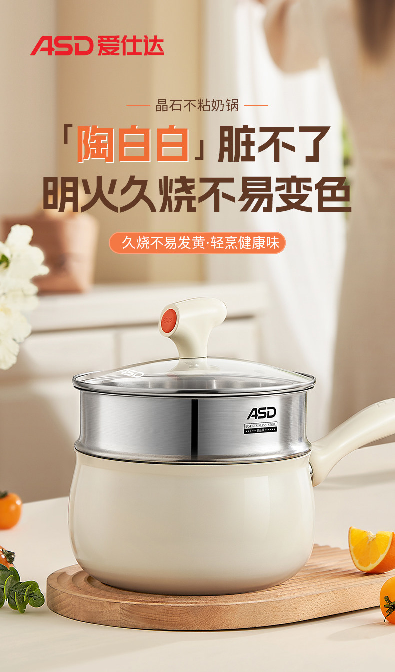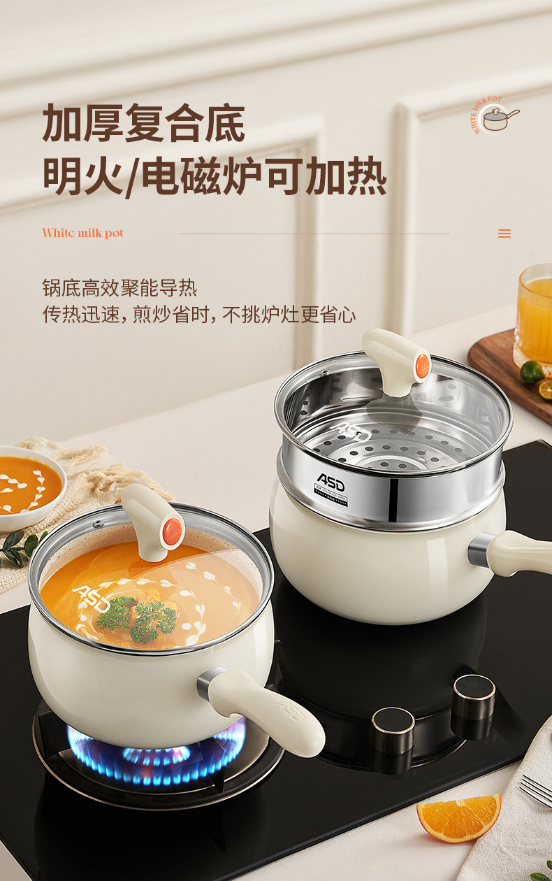 Aistar Baby Food Supplement Pot Ceramic Small Milk Pot Non-Stick Pot Household Baby Frying All-In-One Pot Soup Instant Noodle Pot