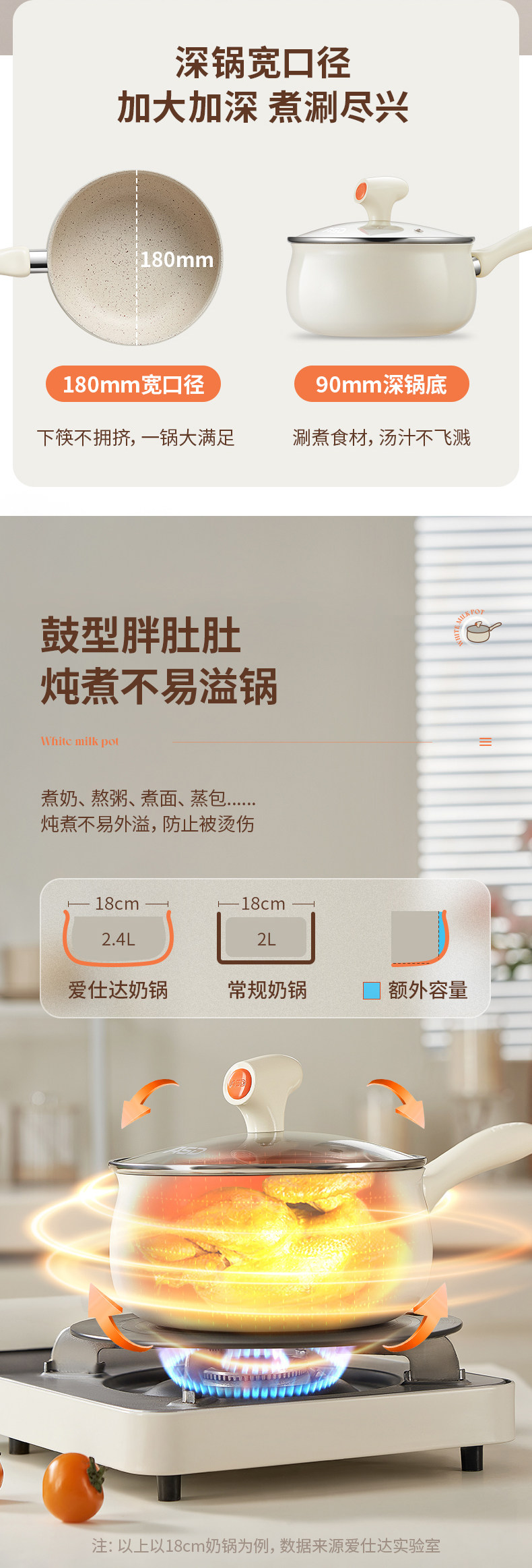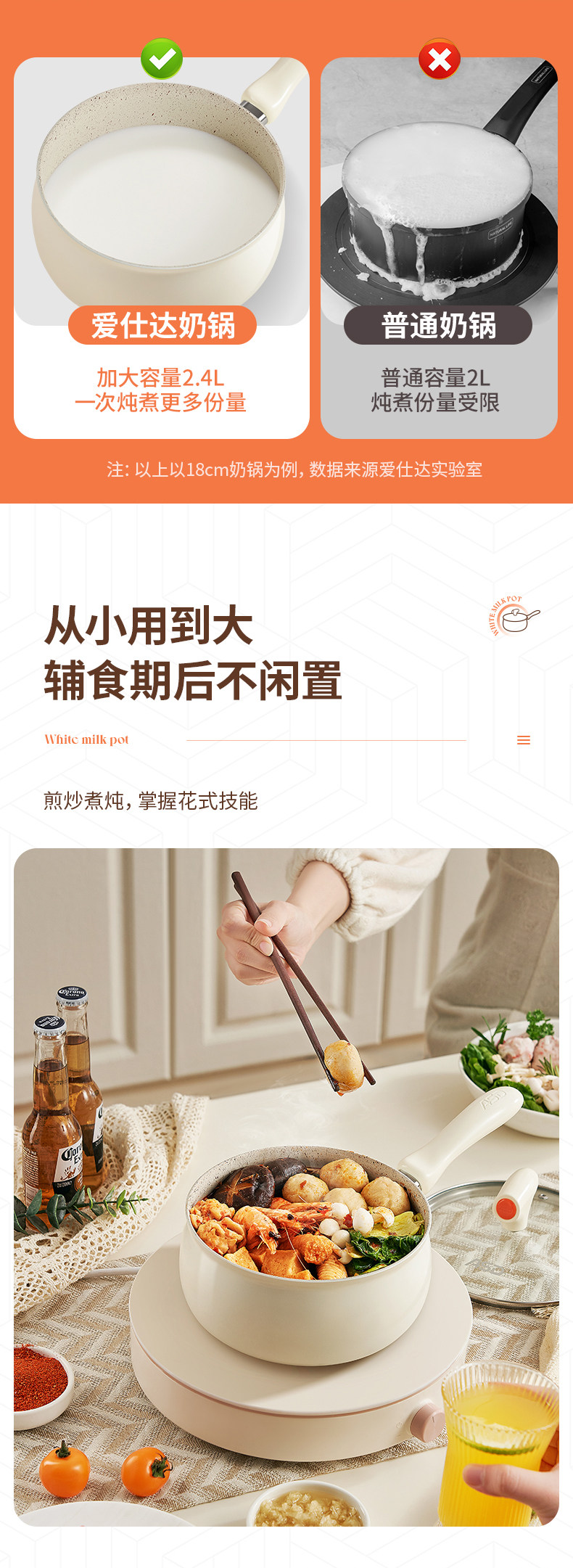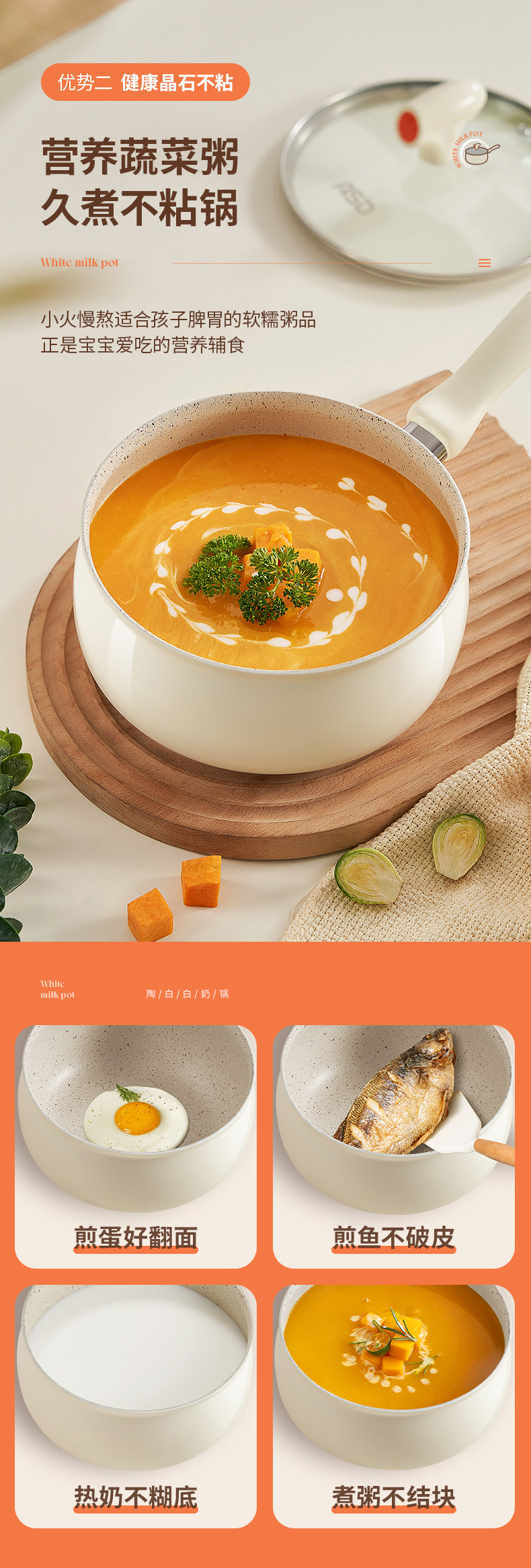 Aistar Baby Food Supplement Pot Ceramic Small Milk Pot Non-Stick Pot Household Baby Frying All-In-One Pot Soup Instant Noodle Pot