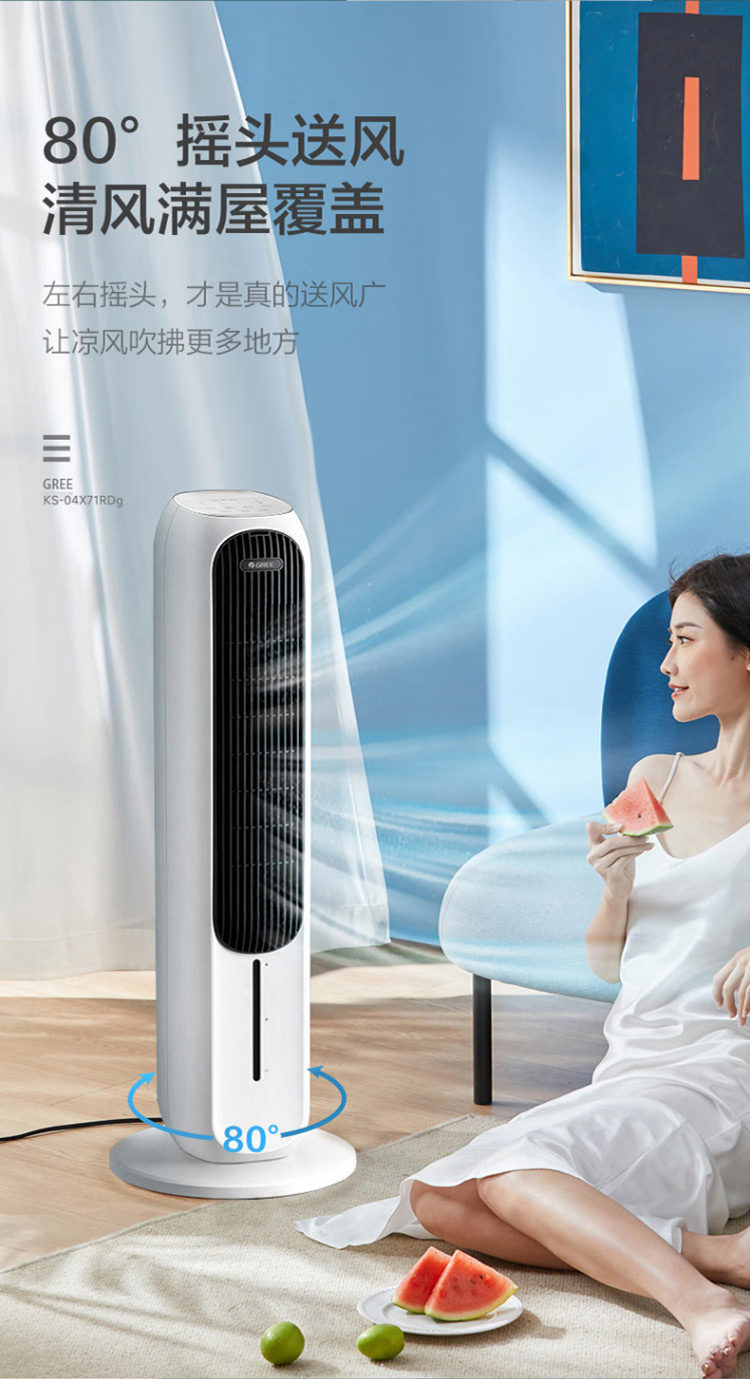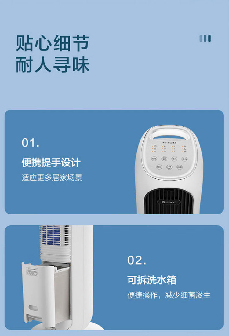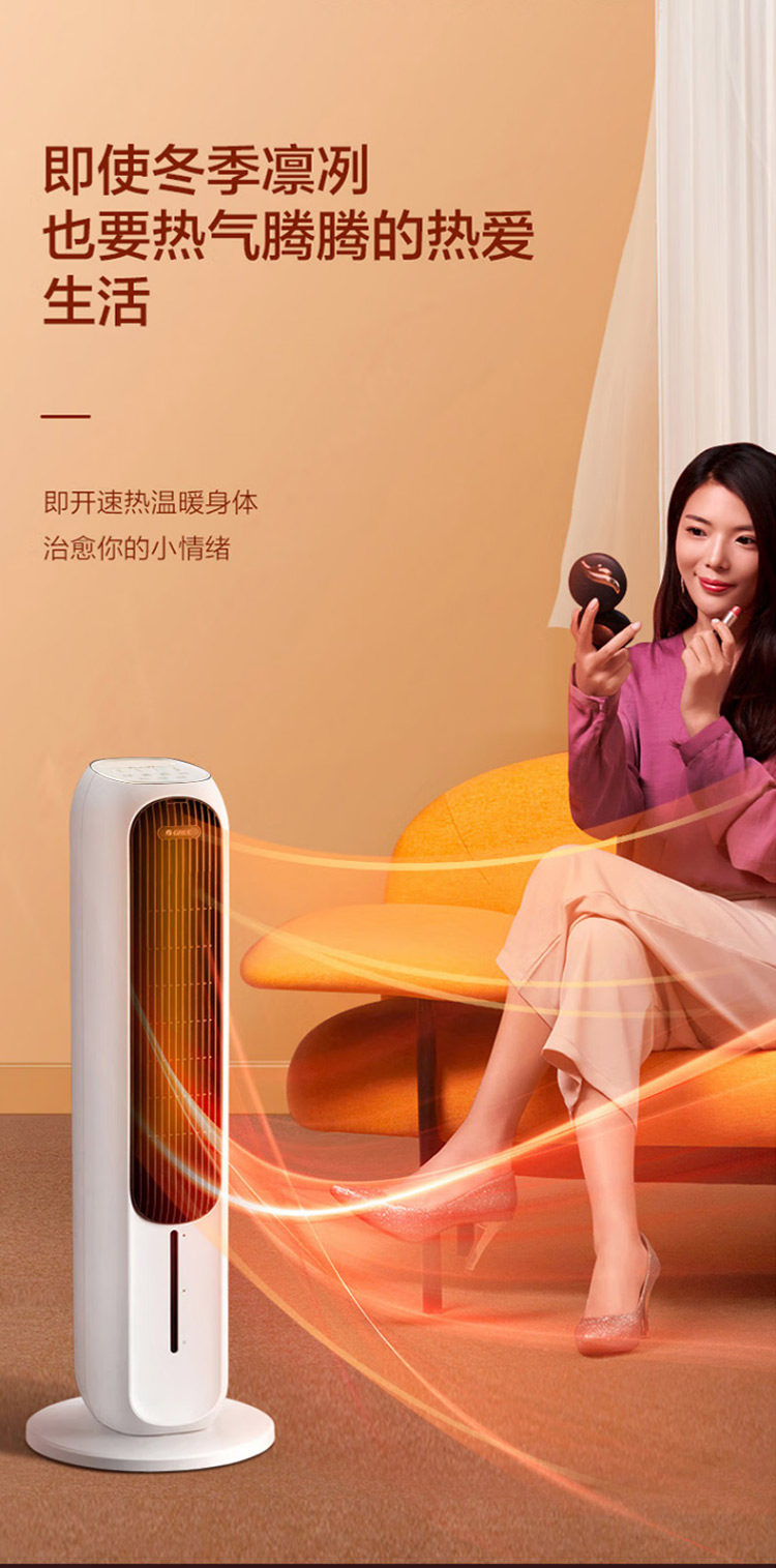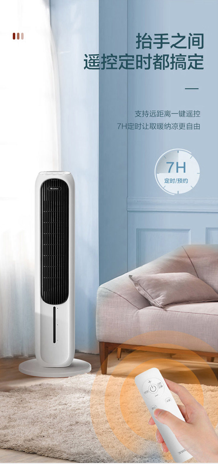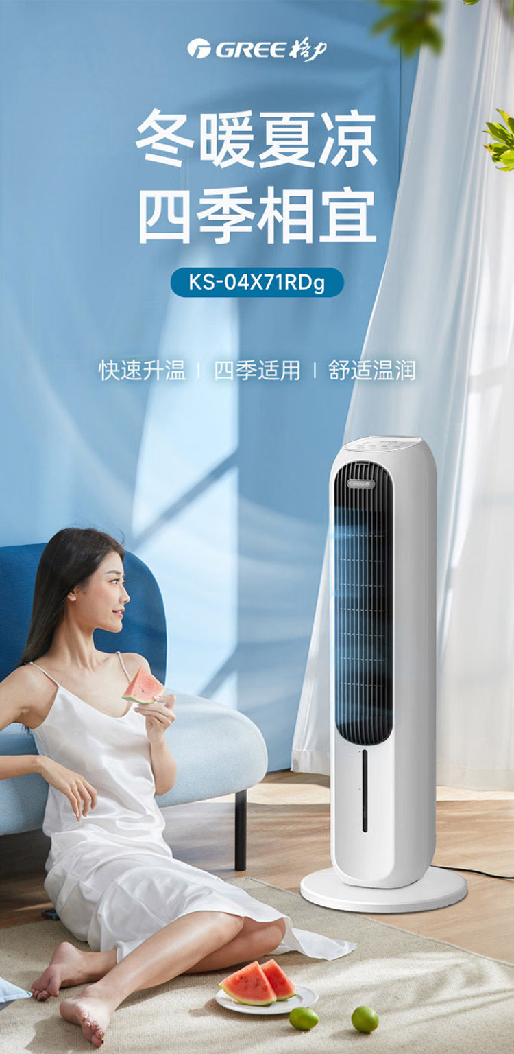 Gree Air Conditioning Fan for Home Use, Dual-Use for Cooling and Heating, Bladeless Tower-Type Cooling Fan, Negative Ion, Strong Wind, Mobile Small Air Conditioner