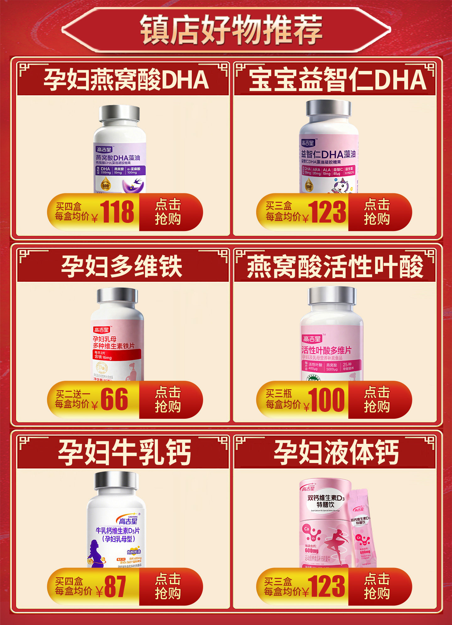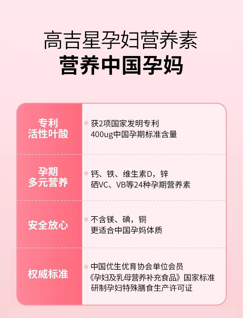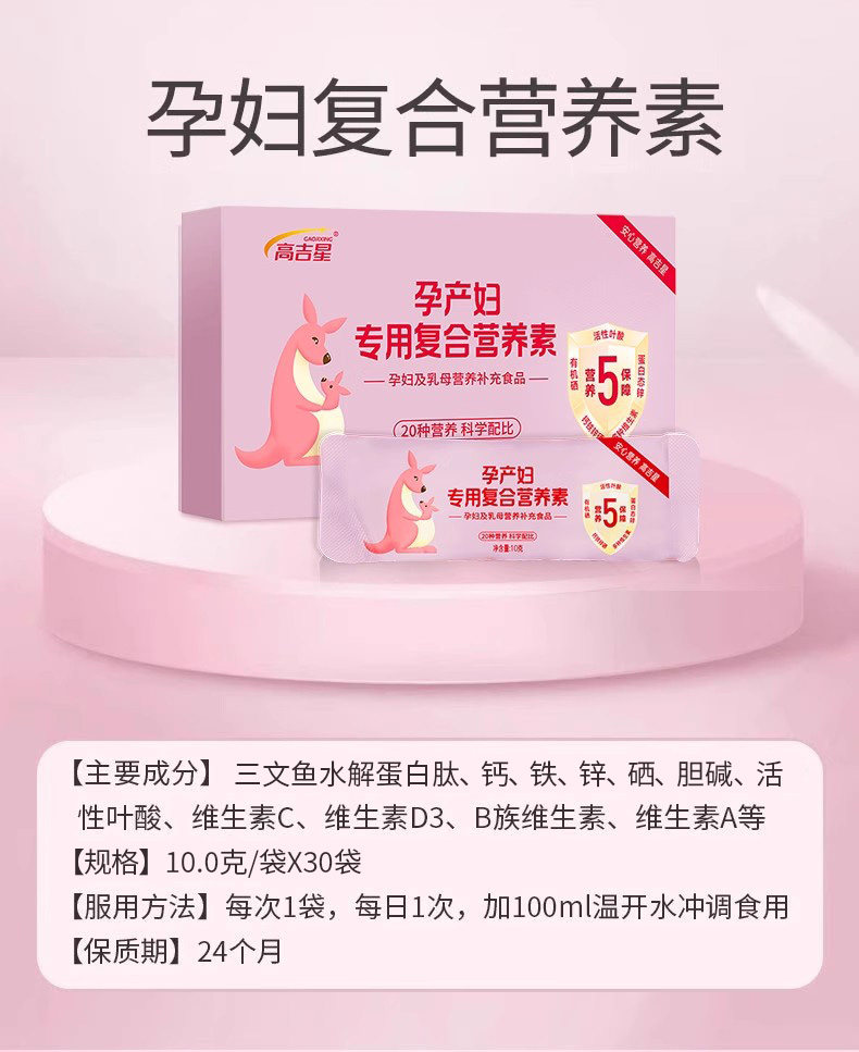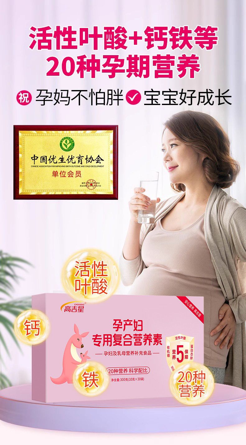 Gaojixing Pregnant Women's Active Folic Acid Complex Vitamin Pregnancy Nutrition Pack for the Entire Pregnancy, Lactation Period, and Postpartum Period