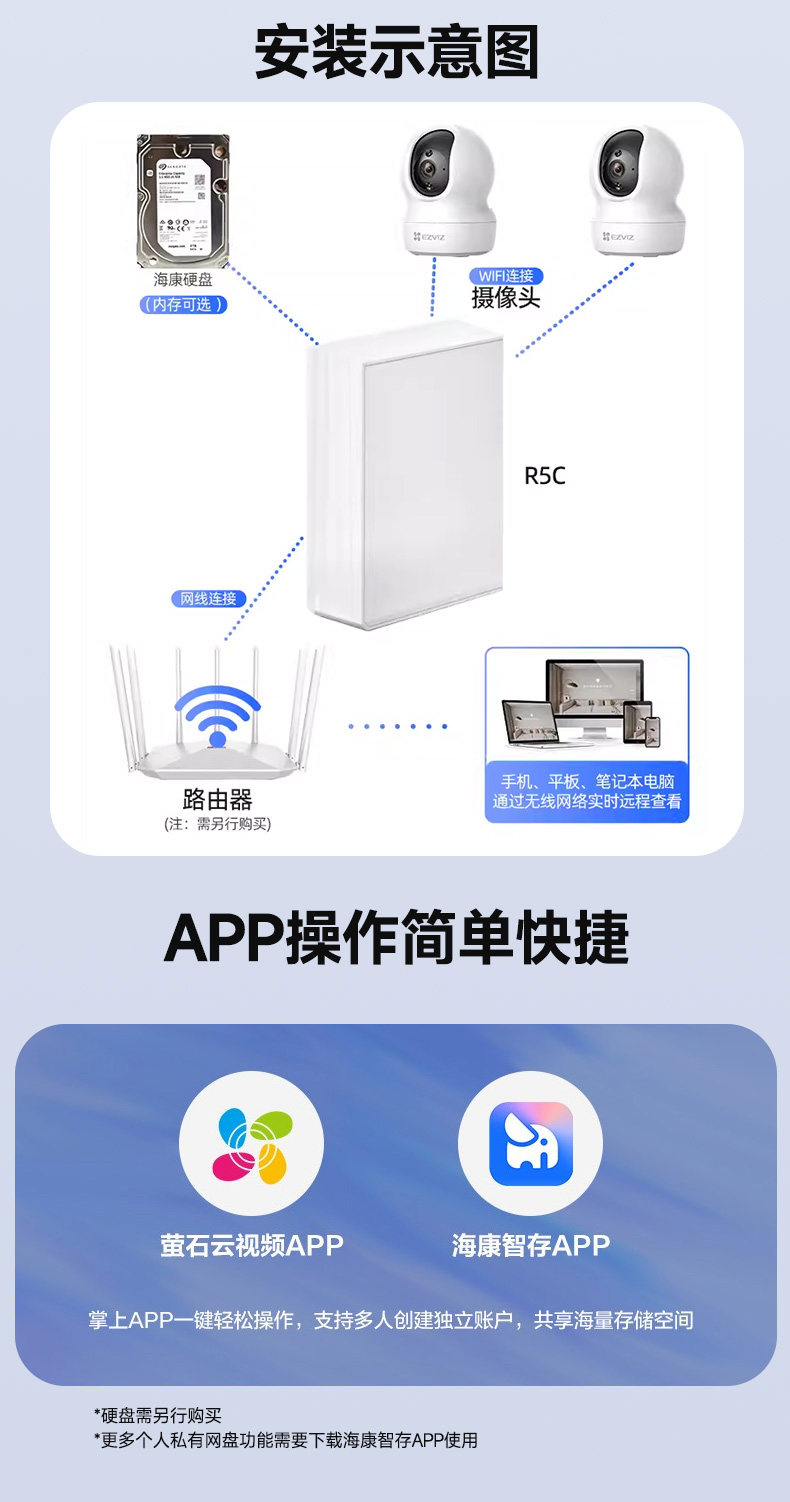 Hikvision Fluorite Cloud Nas Home Private Personal Cloud Network Storage Network Disk Video Mobile Hard Drive R5C