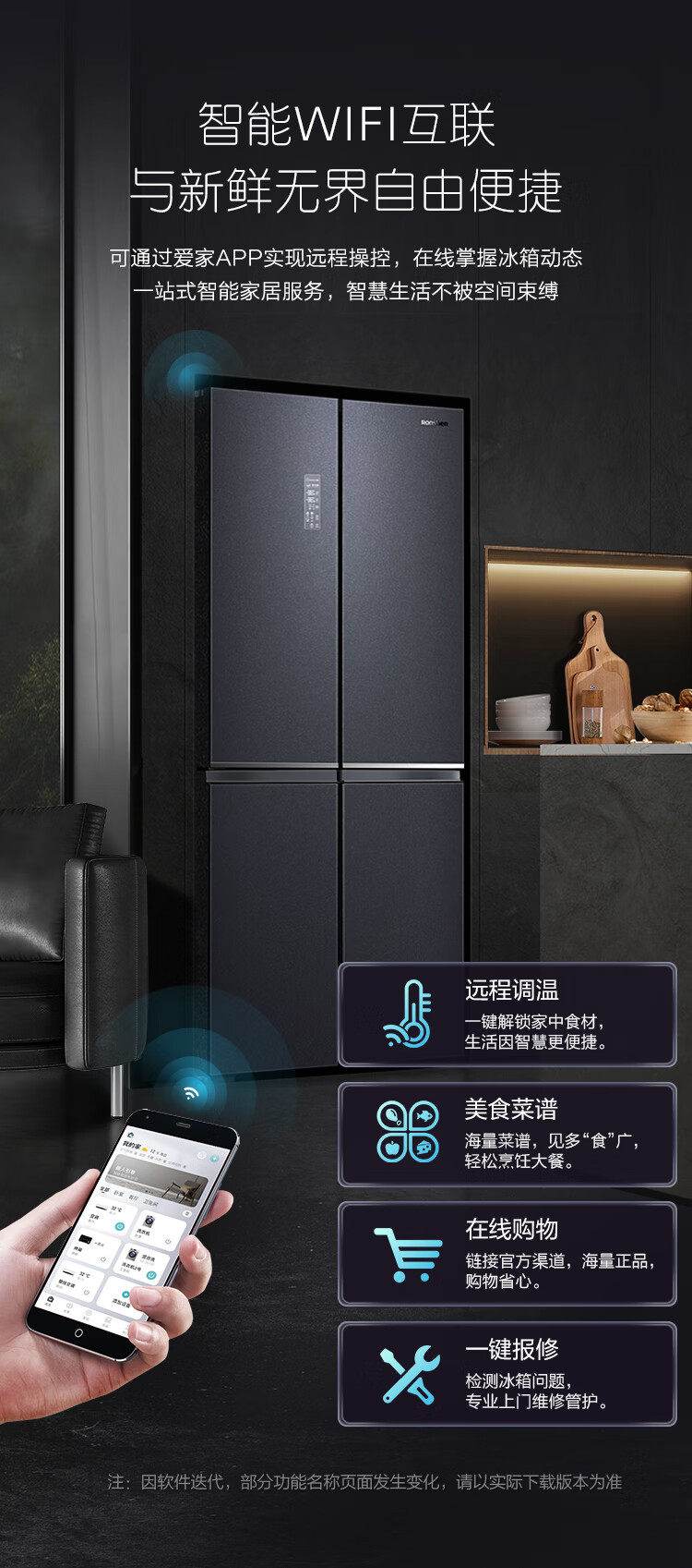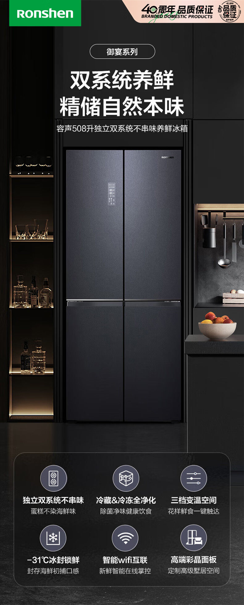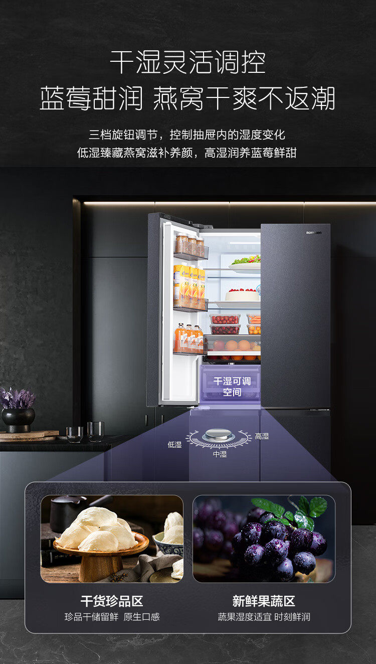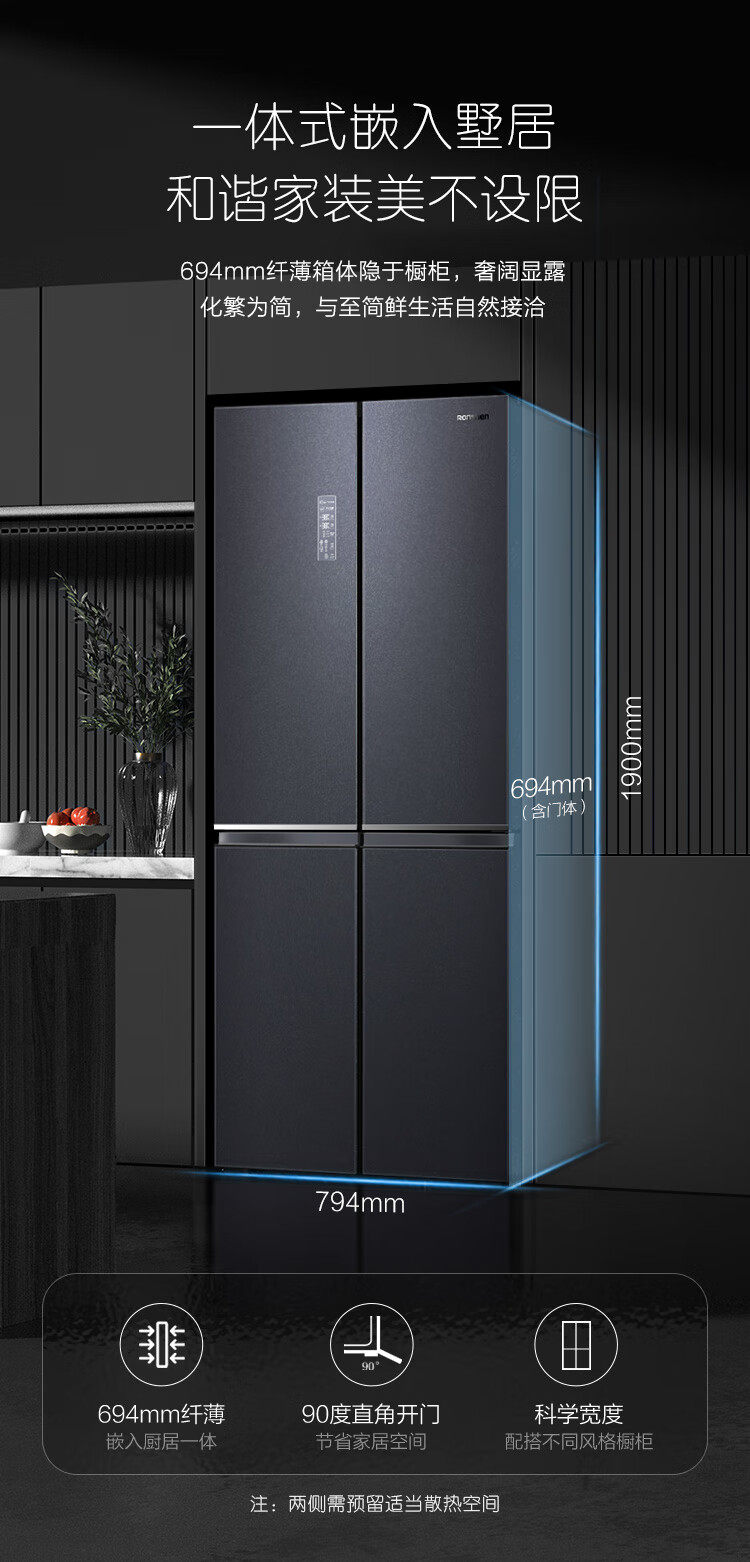 Rongsheng Refrigerator 508 Liters, Upgraded Inverter, Cross-Door, Four-Door, Household, Air-Cooled Bcd-508Wvs1Fpga