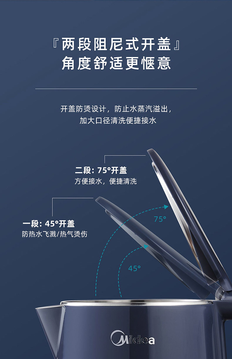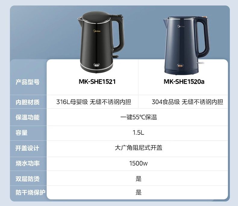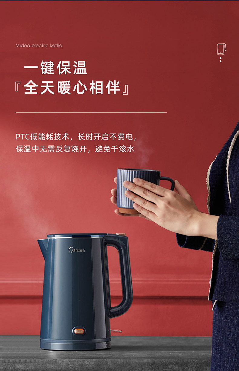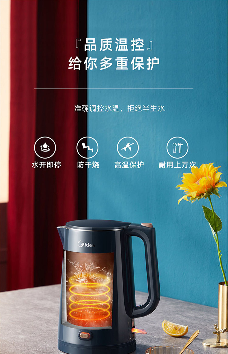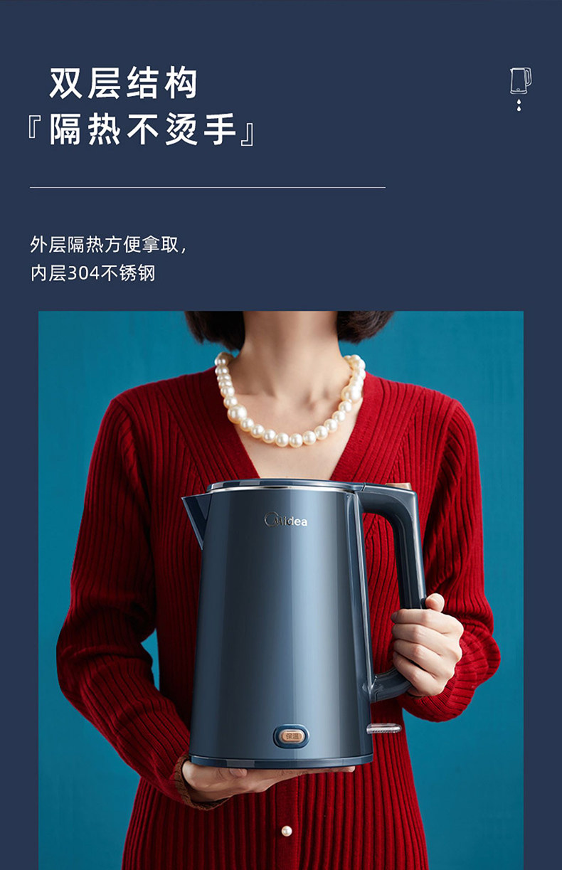 Midea Electric Kettle with Insulation, Household Stainless Steel Double-Layer Anti-Scald Automatic Power-Off Kettle, Constant Temperature Water Boiling Kettle