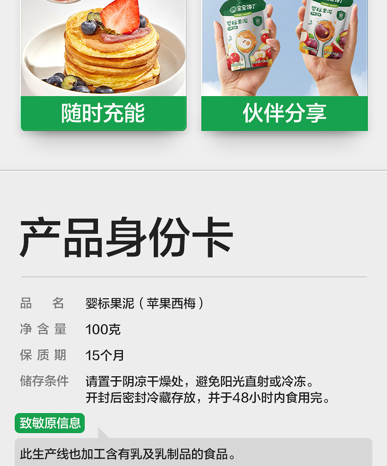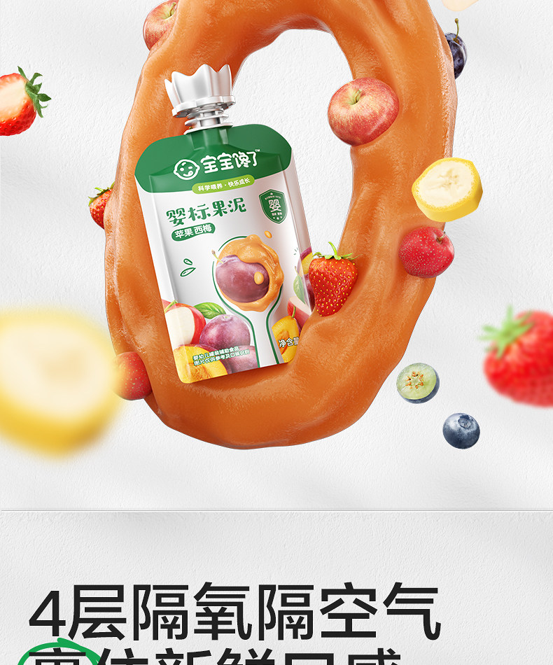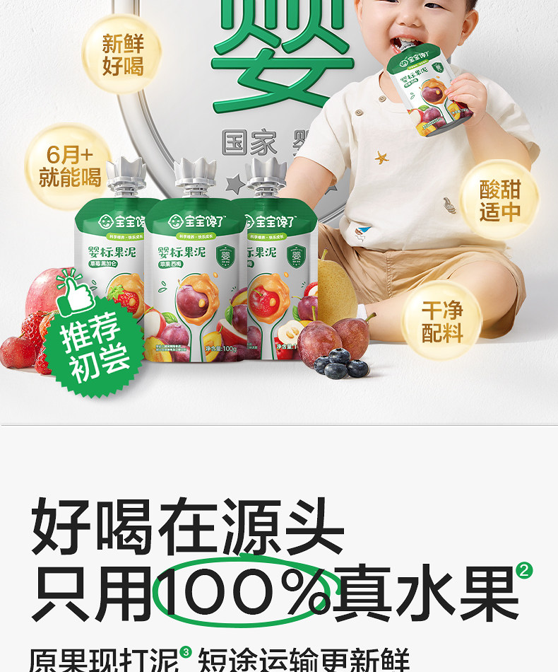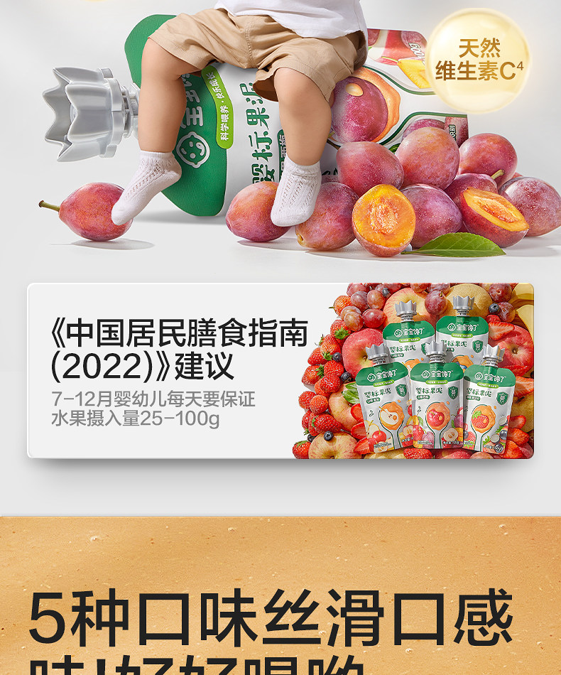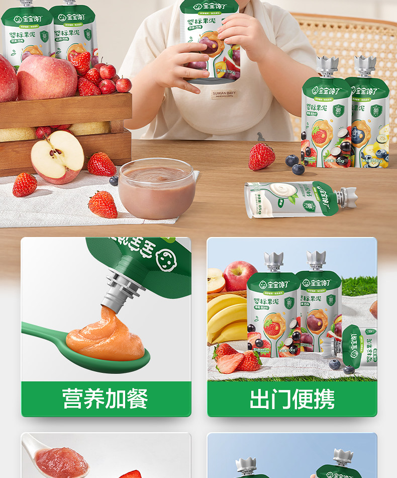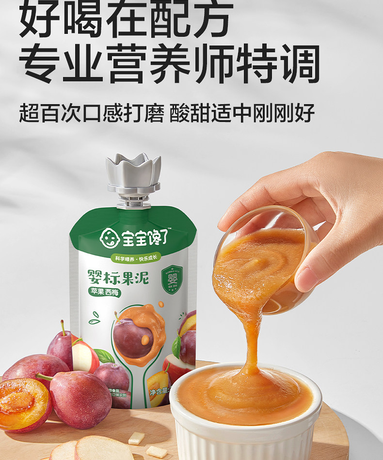 Baby Is Craving Fruit Puree, Infant Food with No Added Salt, Prune Fruit Puree, 6-Month-Old Baby Complementary Food Puree, Children's Snacks