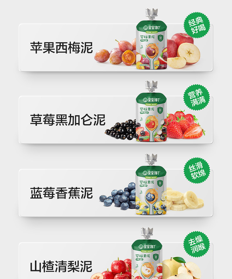 | Taste | [10-Bag Combination Pack] 2 Bags Each of 5 Flavors,[Classic Hot Selling Combination] Strawberry Blackcurrant Puree*4 Bags + Apple Prune Puree*3 Bags + Hawthorn Prune Puree*3 Bags,【Smooth Sailing】Apple Prune Puree * 5 Bags + Hawthorn Prune Puree * 5 Bags,[Sweet and Sour Berry Combination] Strawberry Blackcurrant Puree*5 Bags + Blueberry Banana Puree*5 Bags,[10 Bags of Fresh Fruit Puree] 2 Bags Each of 5 Flavors |
