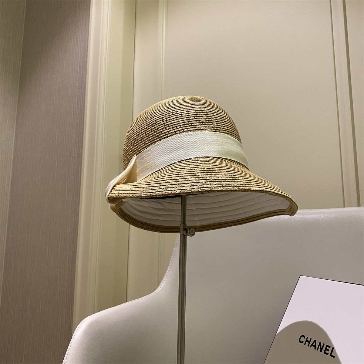 Japanese Official Website Same Style Bow Straw Hat for Women Summer Anti-Uv Fisherman Hat Sun Protection Sun Hat