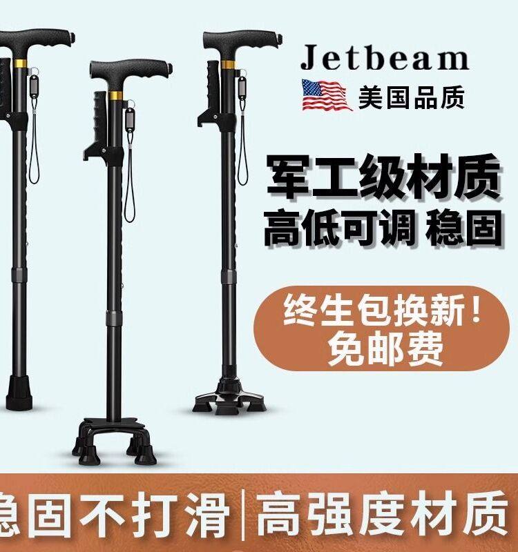 Elderly People's Crutches, Non-Slip Crutches, Four-Legged Walking Sticks for the Elderly, Aluminum Alloy, Lightweight, Multi-Functional, with Lights, Retractable and Adjustable